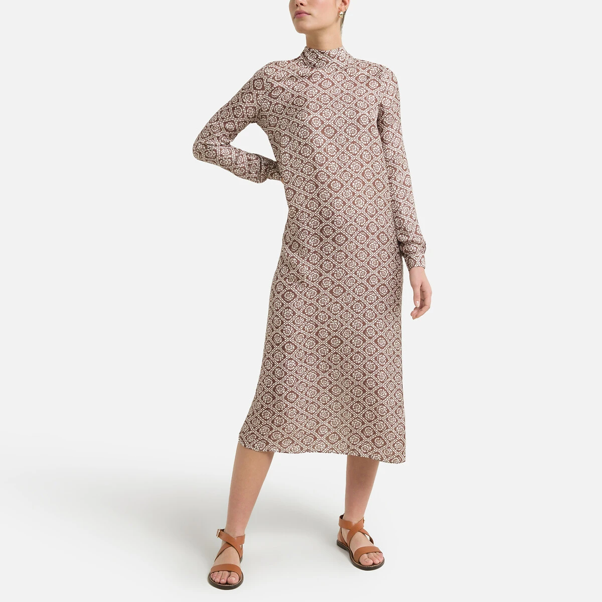 Robe droite imprimée mi-longue NITYTOWN imprimé bordeaux AMERICAN VINTAGE