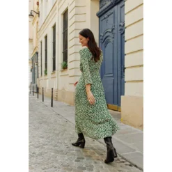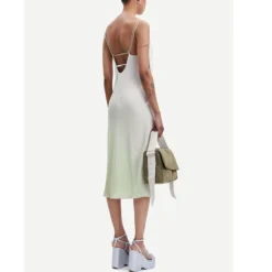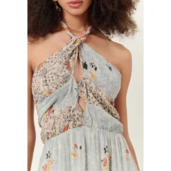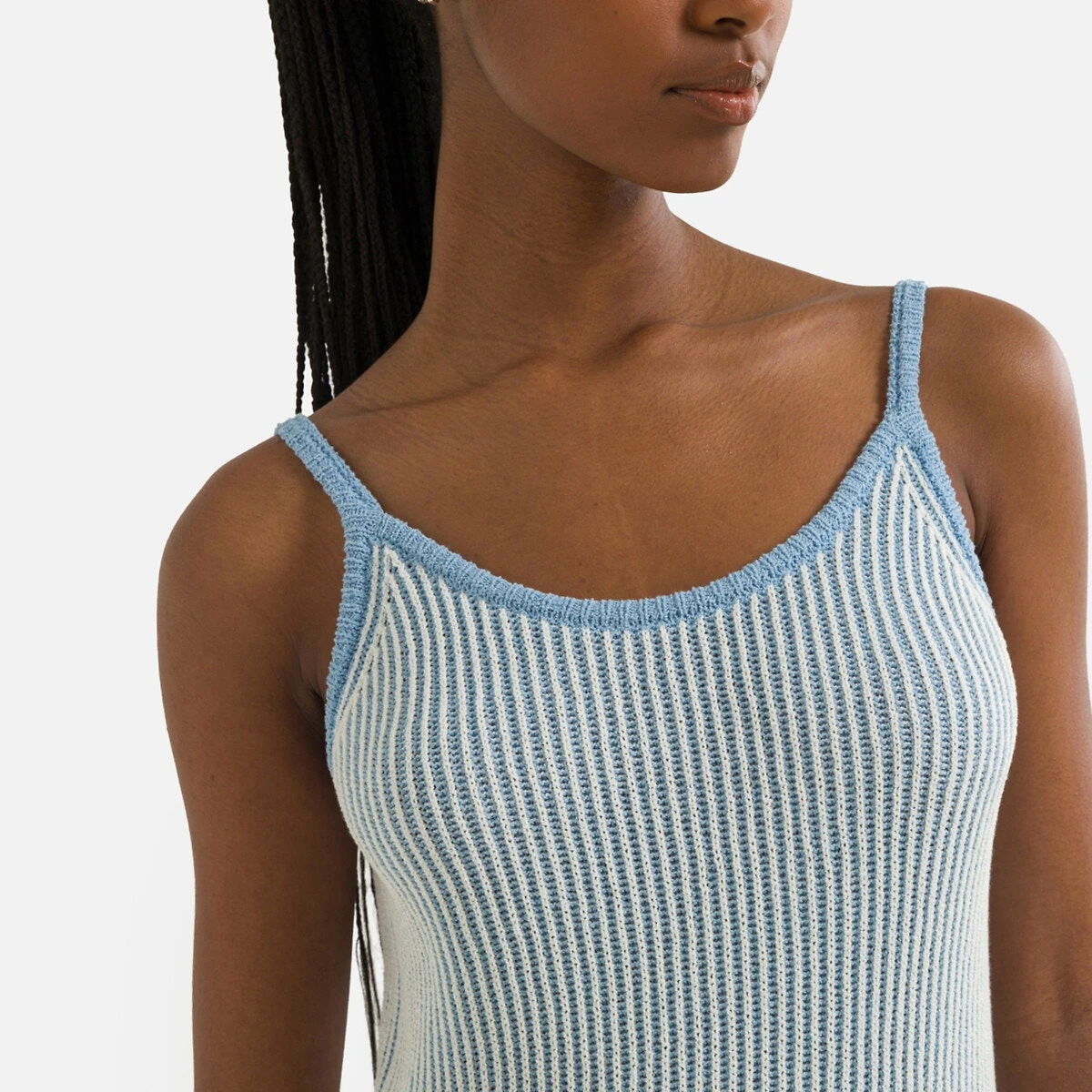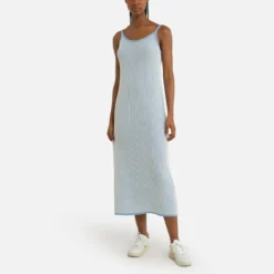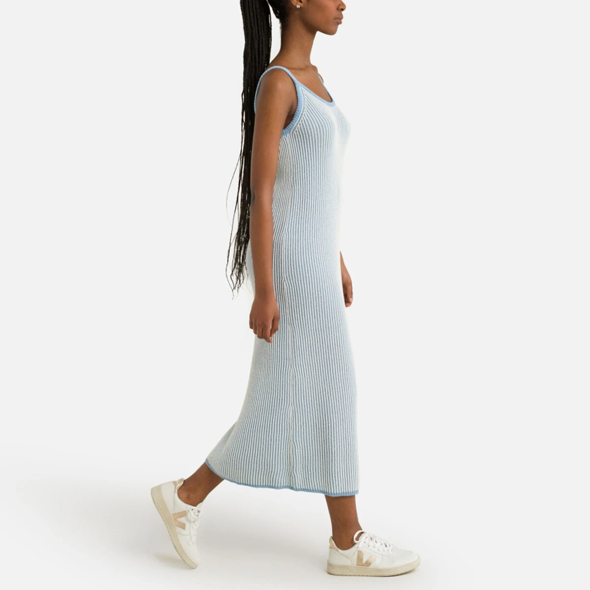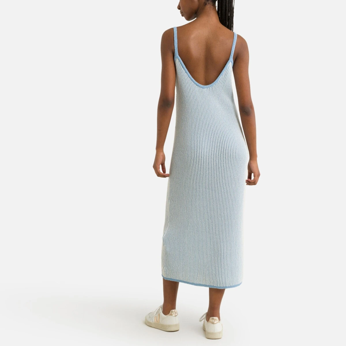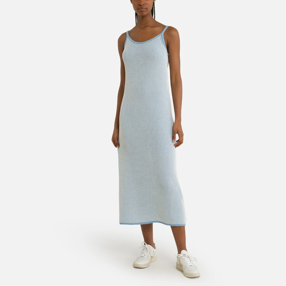 Robe droite, longue à fines bretelles PAGAVILLE bleu/écru AMERICAN VINTAGE