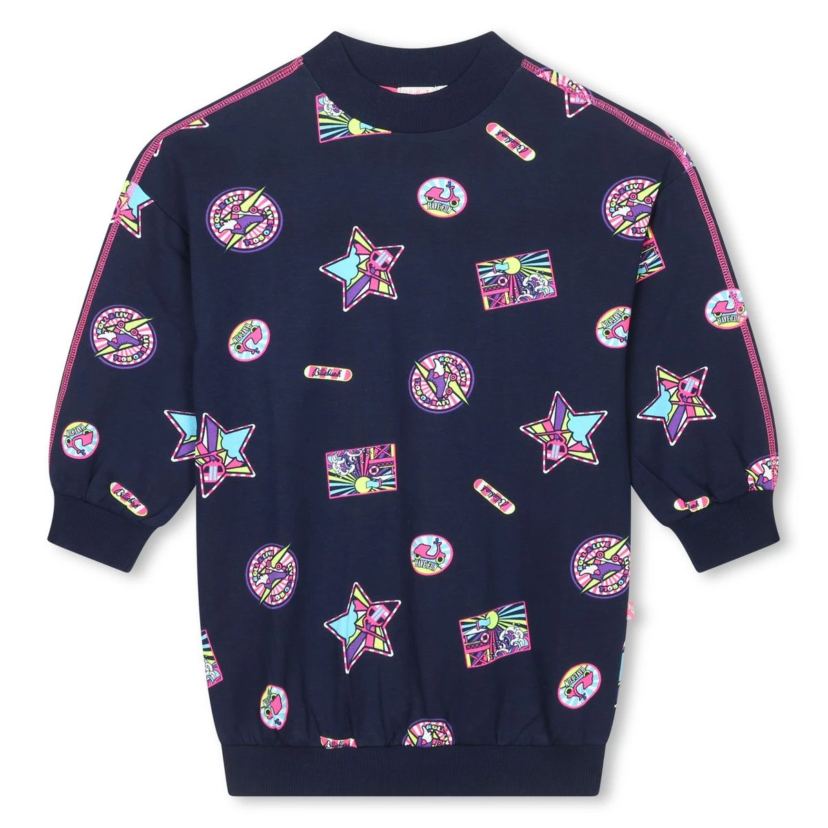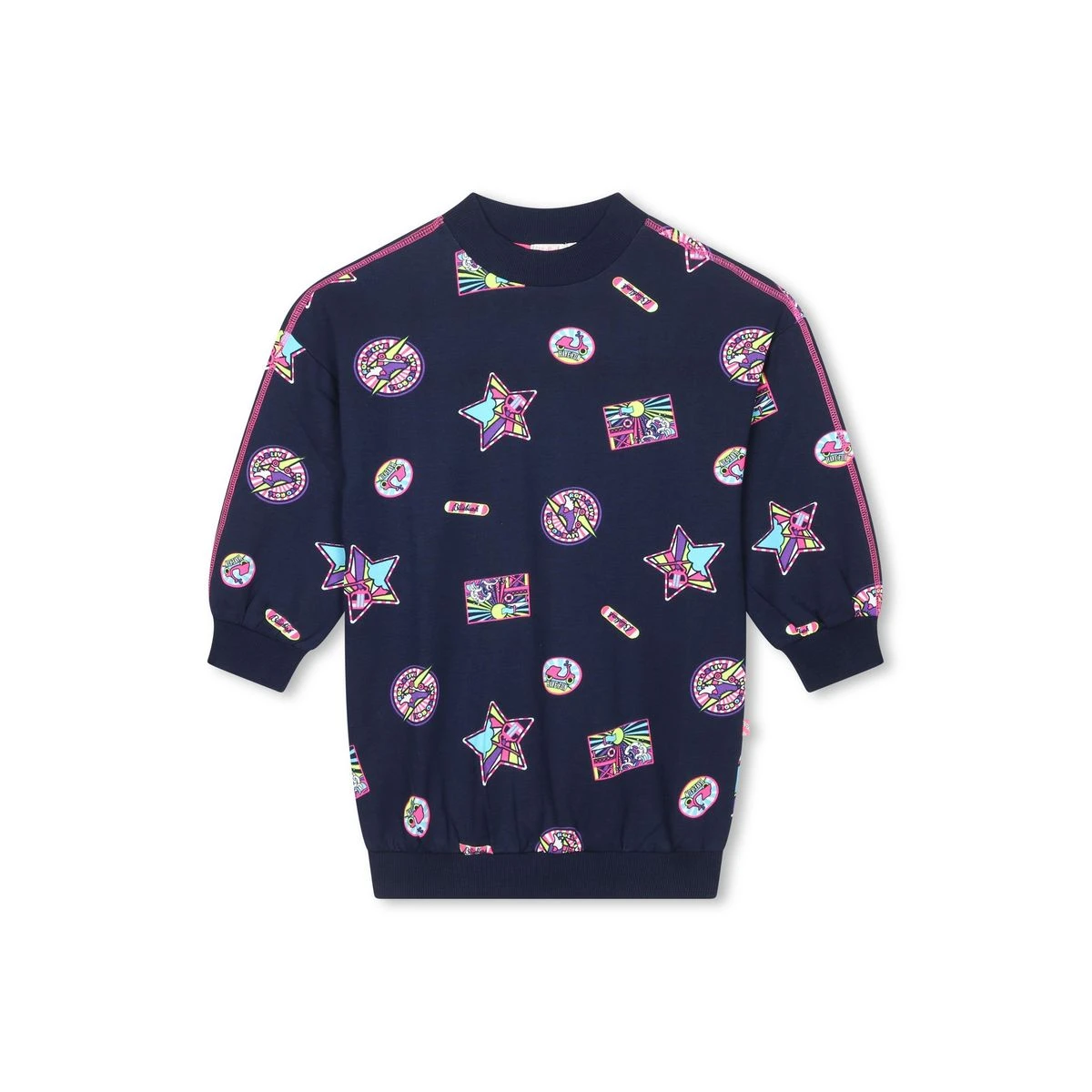 Cette robe en molleton Billieblush apporte du peps à la tenue avec son imprimé badges multicolores. Ses surpiqûres contrastantes sur le dessus des manches contribuent à son originalité. Elle se termine par de larges bords-côtes élastiqués à la base, aux poignets et au col.