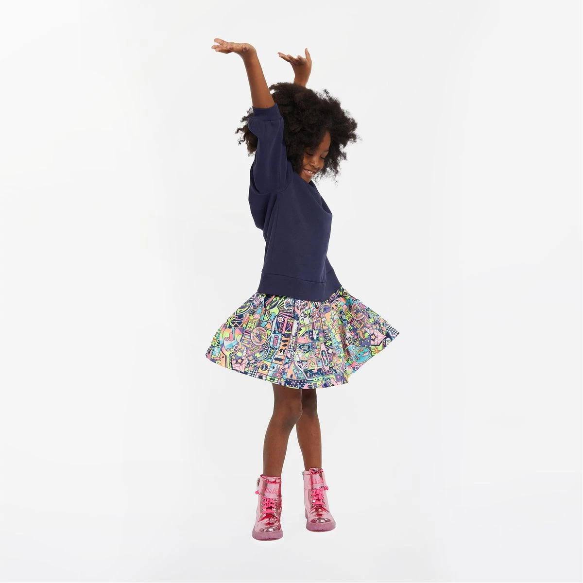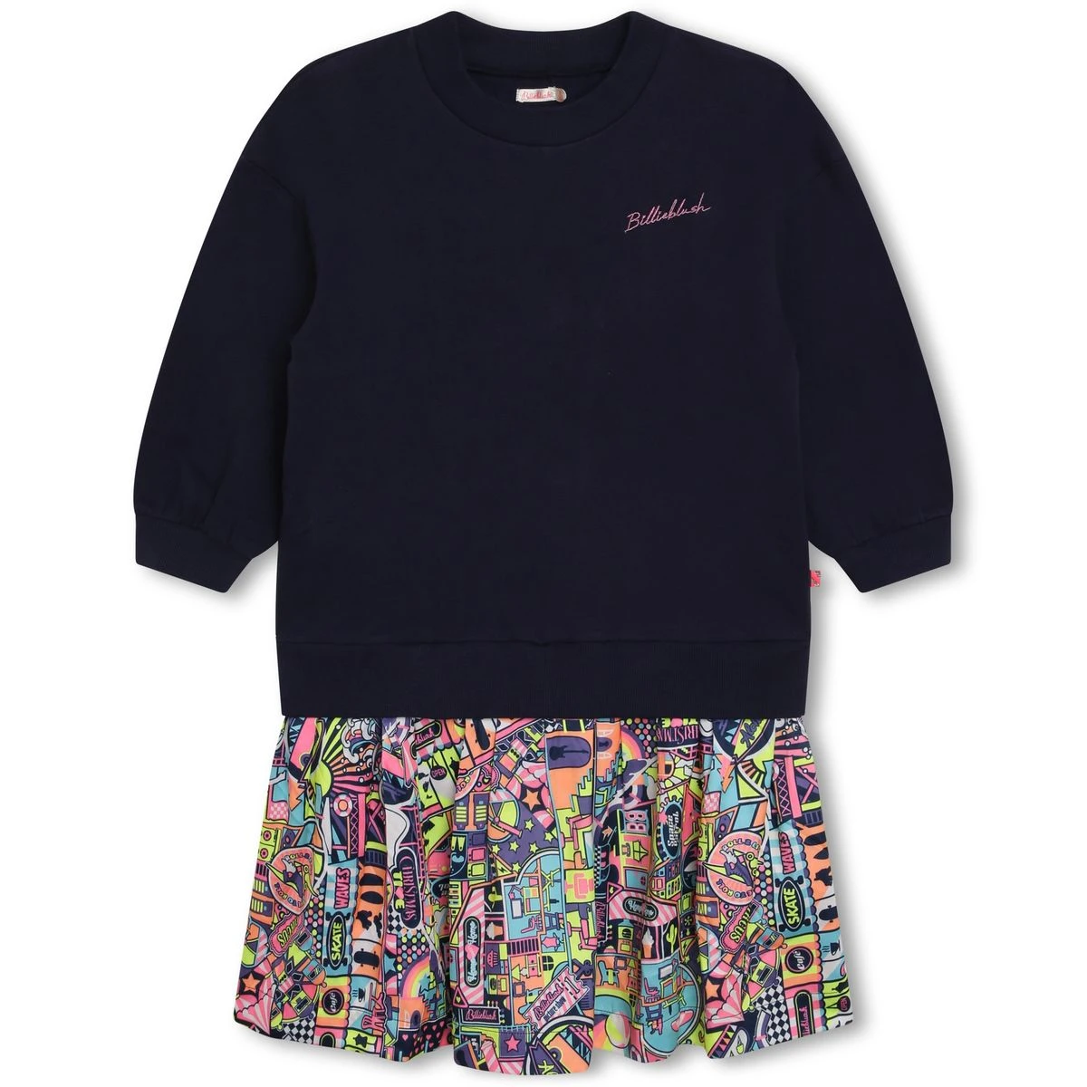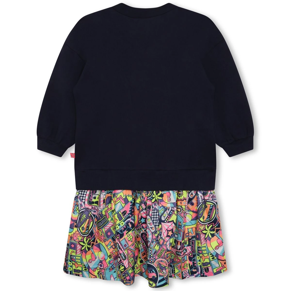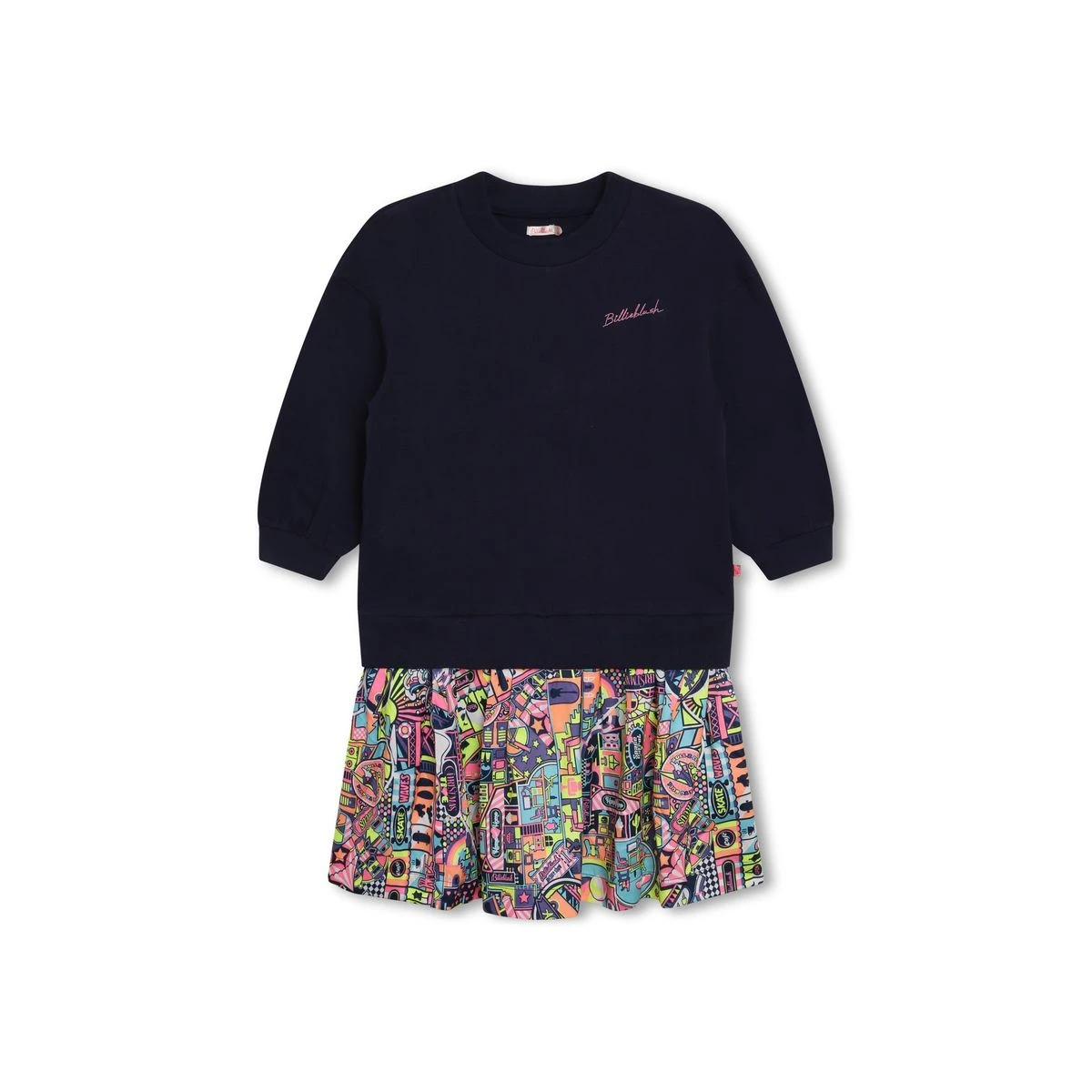 Cette robe Billieblush joue sur les contrastes avec son haut en molleton et sa jupe en matière satinée. Cette dernière se pare d’un imprimé « Fun Crossing » haut en couleur. Une broderie Billieblush orne la poitrine.