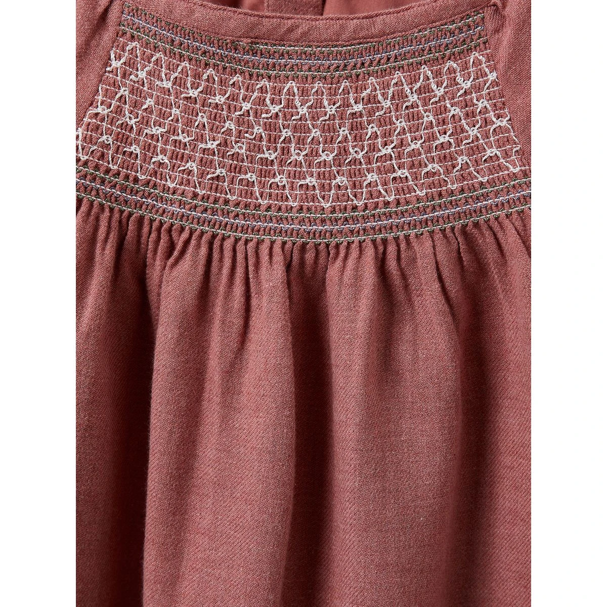 – 100% coton toucher doux. Doublure corps 100% coton- Smocks et fleurs dorées sous l’encolure. Coupe ample. Poignets élastiqués- Ouverture dos par boutons. Longueur dessus genoux