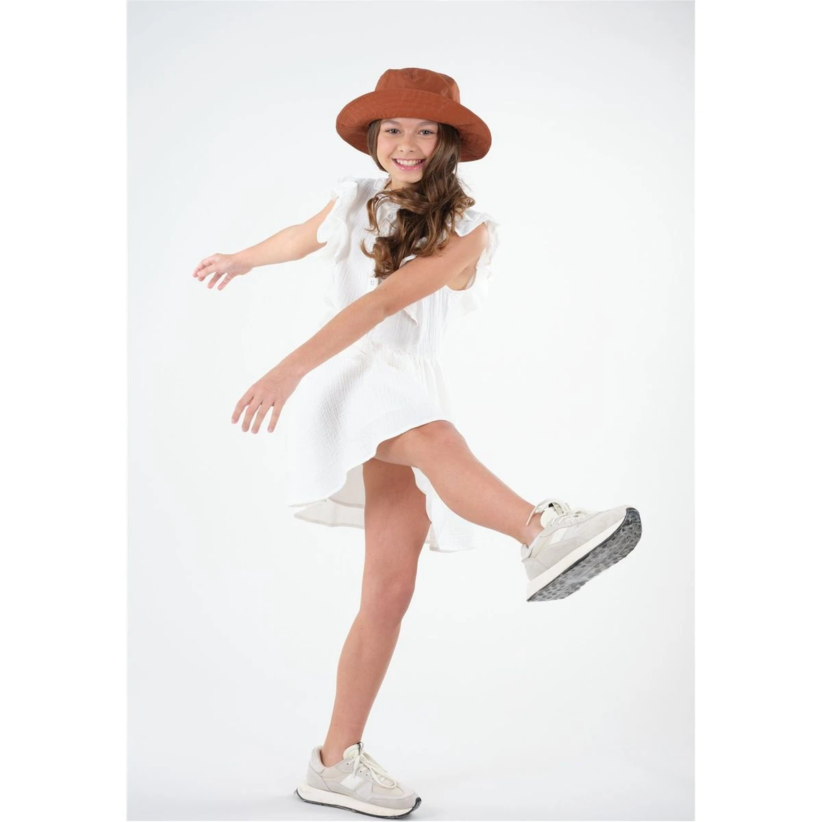 Un vent de romantisme souffle sur la robe AGATHE, ce joli modèle en gaze de coton pour fille. On craque pour sa coupe mi-longue, sa matière agréable au toucher et ses détails volantés sur le col et les manches. Lavage à 30° / Repassage moyen / Pas de séchage en machine