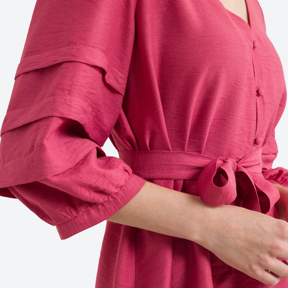 Robe évasée boutonnée rose DES PETITS HAUTS