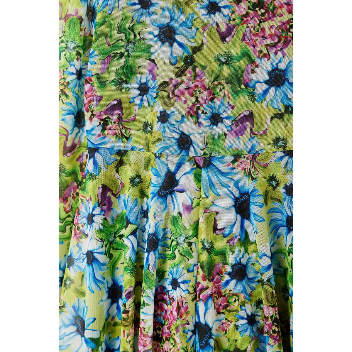 Robe courte Ă manches longues en tulle avec une ouverture dans le dos, agrĂ©mentĂ©e d’un imprimĂ© floral multicolore.