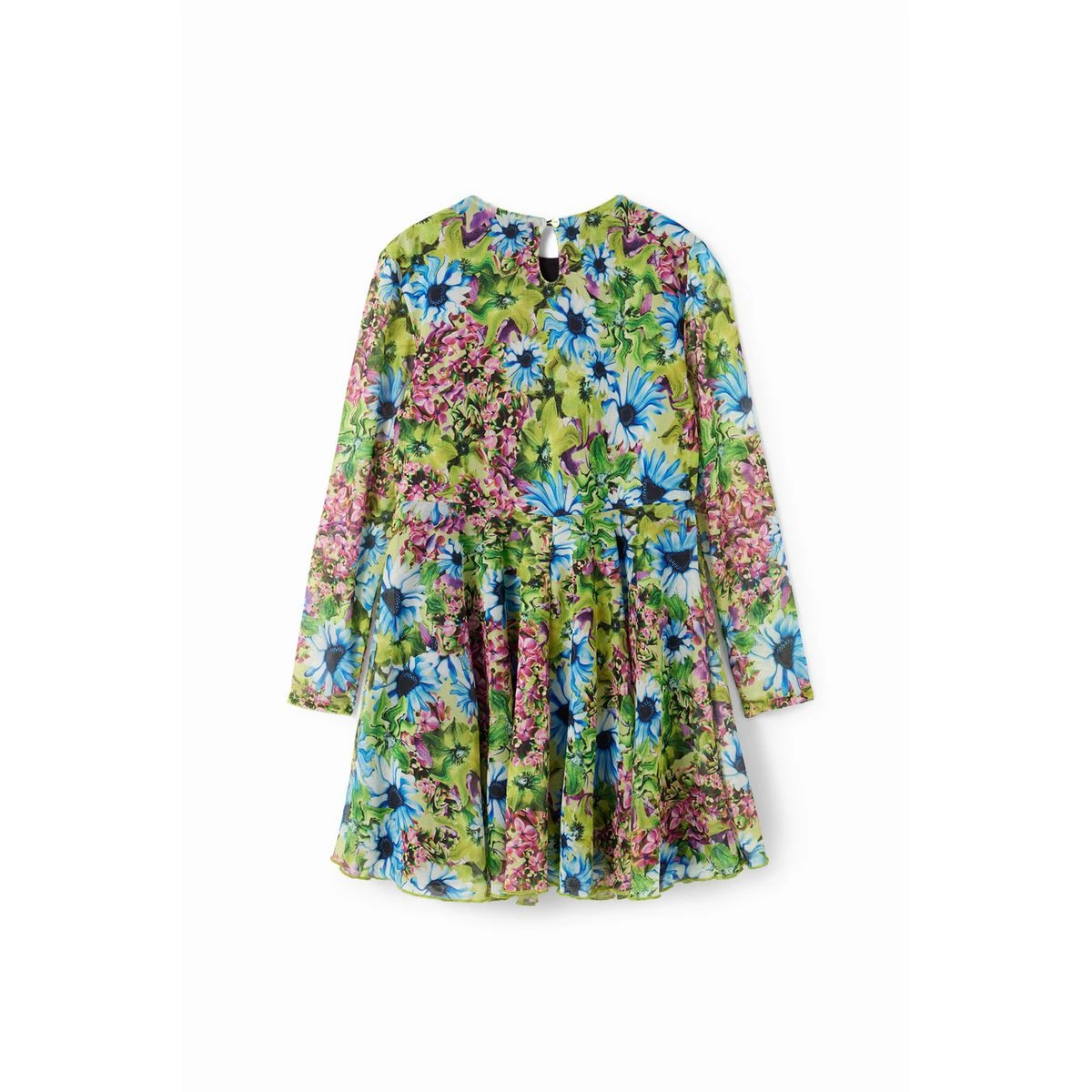 Robe manches longues tulle fleurs bleu DESIGUAL