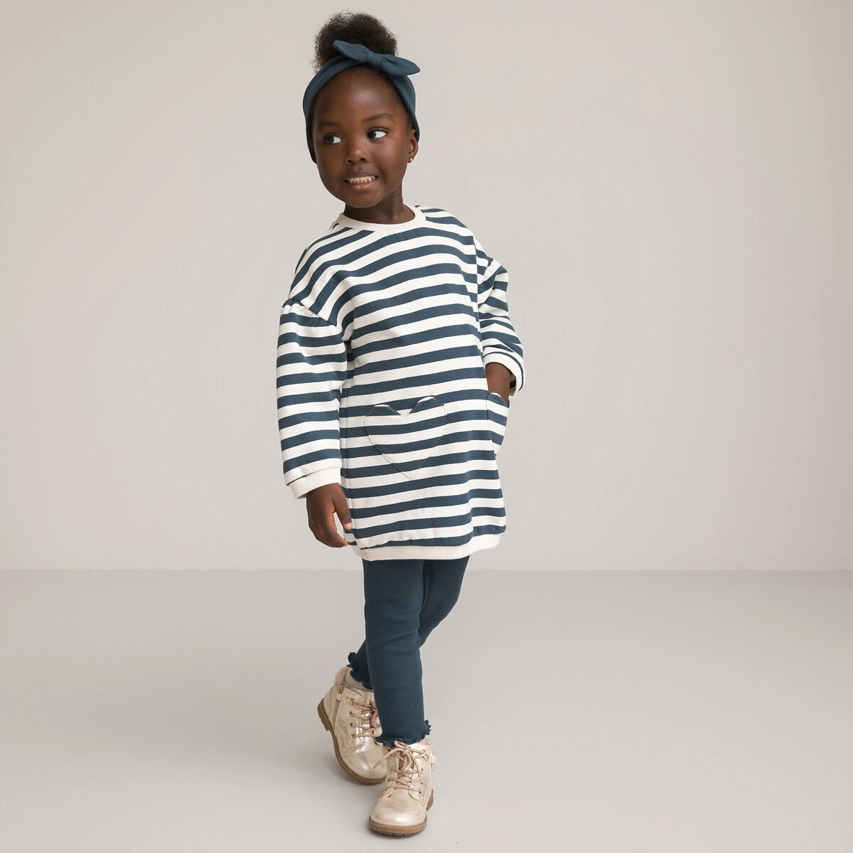 Ensemble 3 pièces robe, legging et bandeau bleu/blanc LA REDOUTE COLLECTIONS
