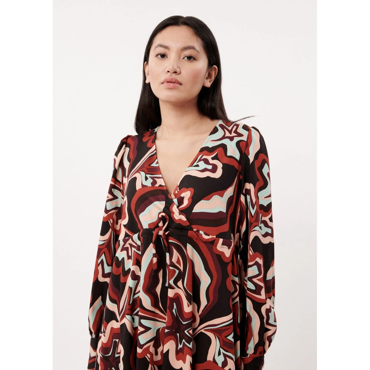 – Col V avec dĂ©tails plissĂ©s et nĹ“ud Ă nouer