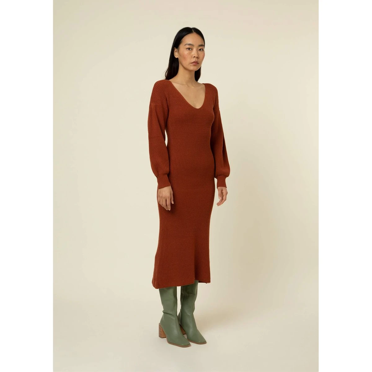 – Robe midi Ă manches longues