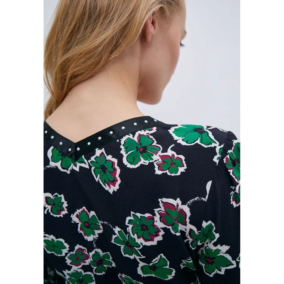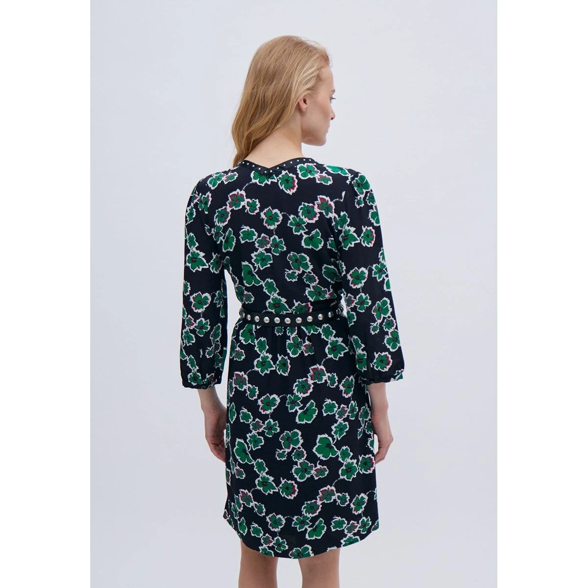 Robe imprimé maxi floral à col clouté noir, vert IKKS