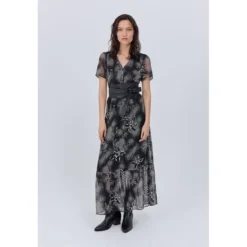 Robe longue imprimée à manches courtes blanc cassé IKKS