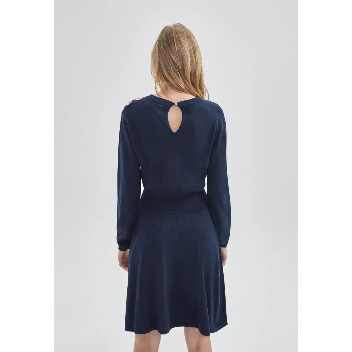 Robe pull tricot avec boutons-bijou bleu marine IKKS