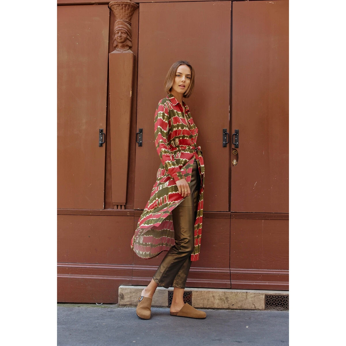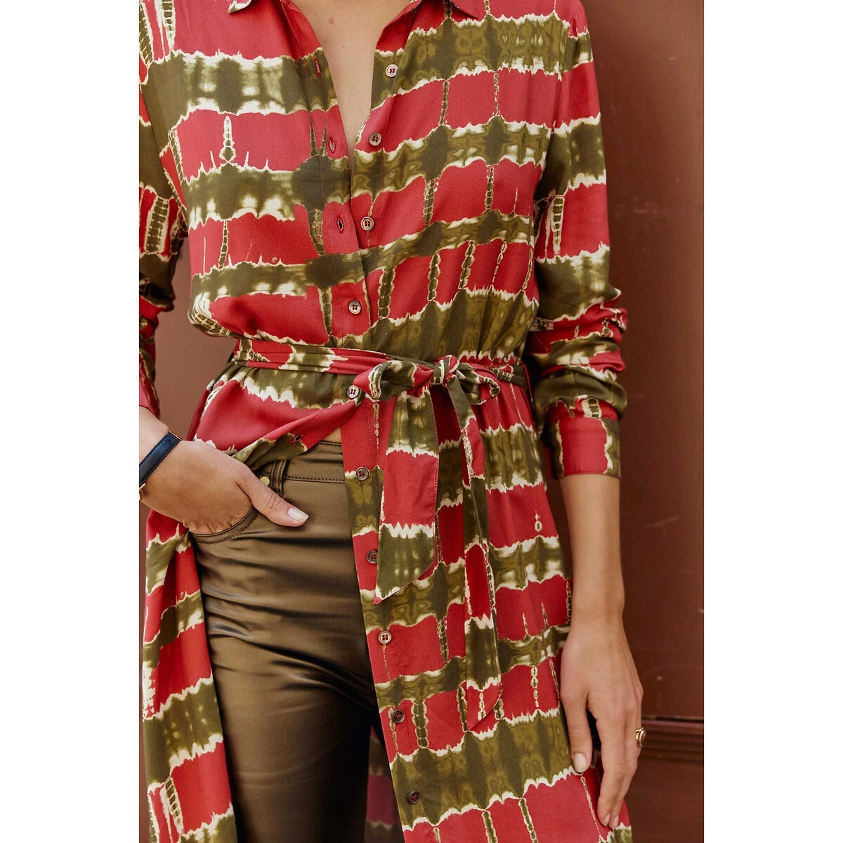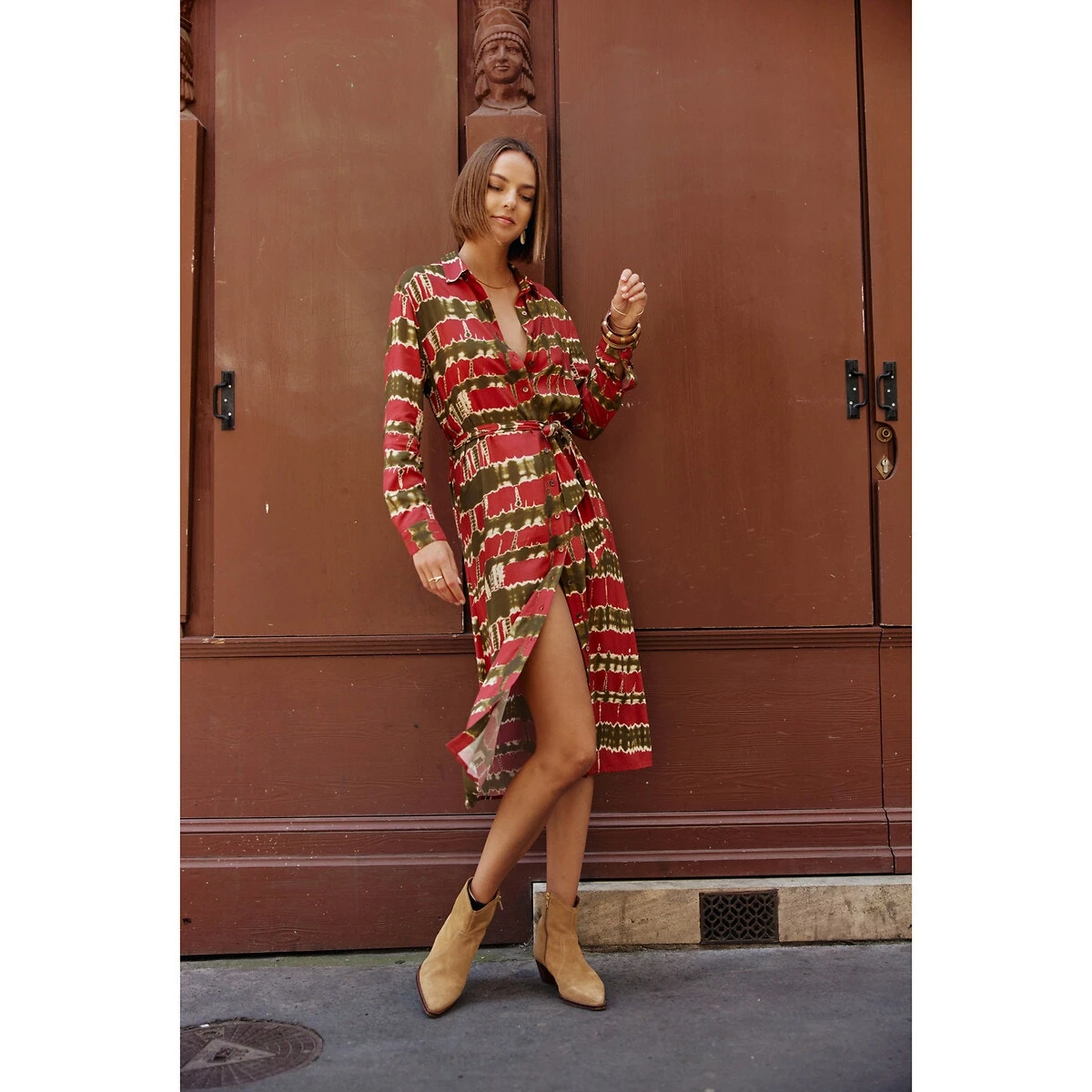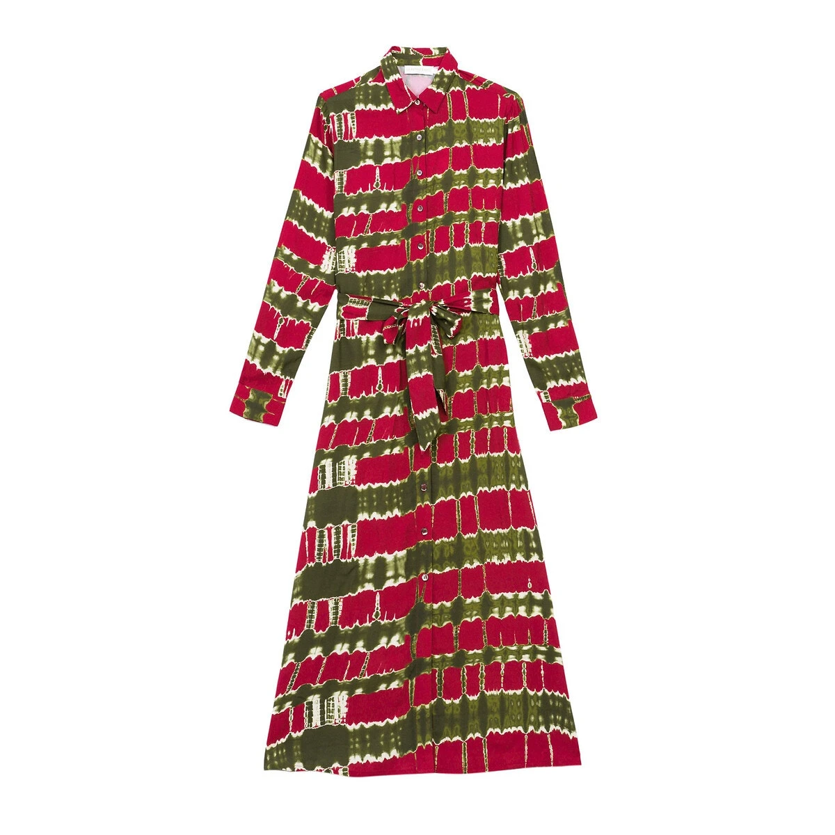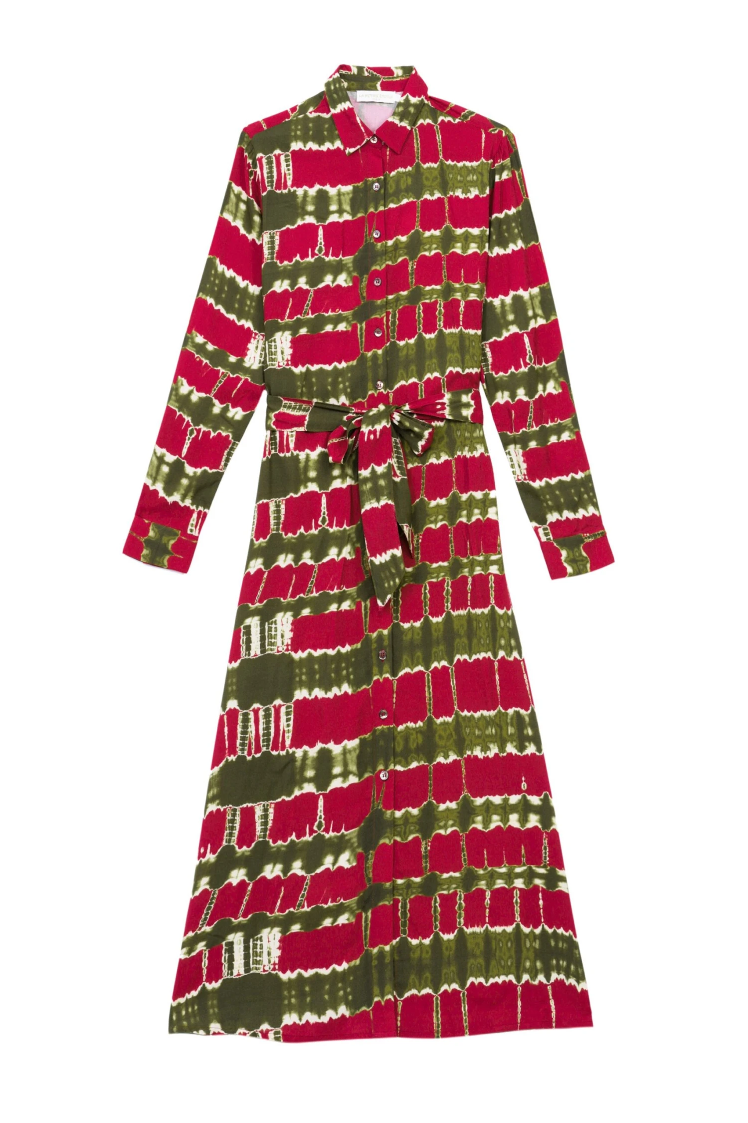Robe-chemise GAIA longueur genou rouge/vert LA PETITE ETOILE