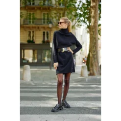 Robe-pull à col roulé et manches longues SIRIA noir LA PETITE ETOILE