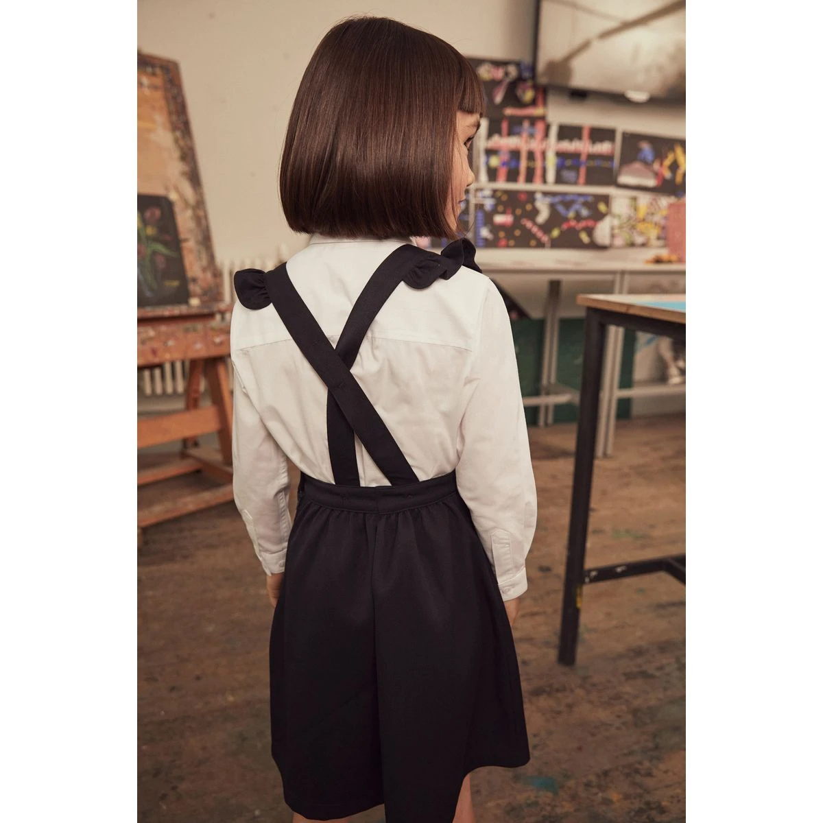 Chemise manches longues et robe chasuble bleu marine/blanc NEXT