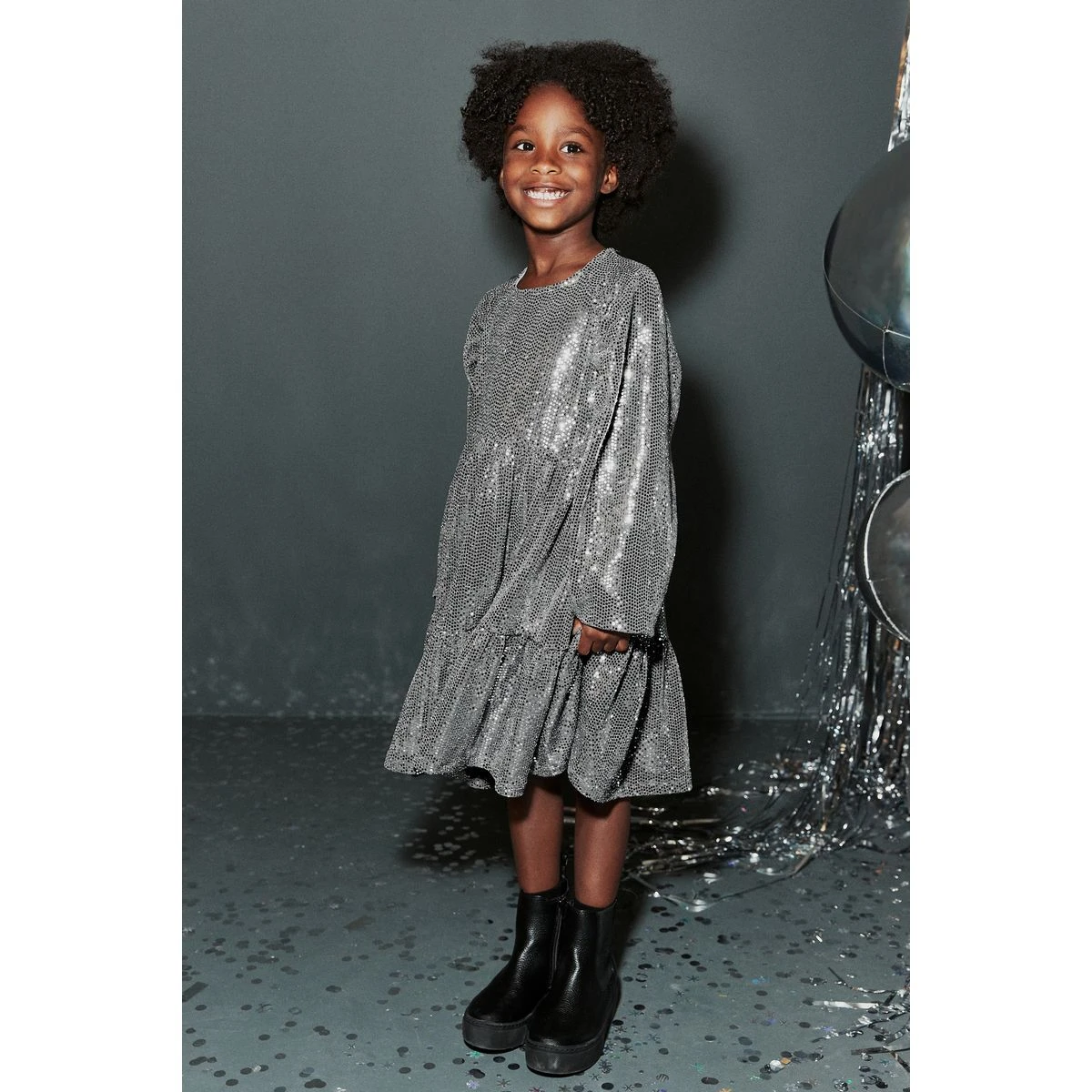 Robe à sequins et manches longues argent/métallisées NEXT