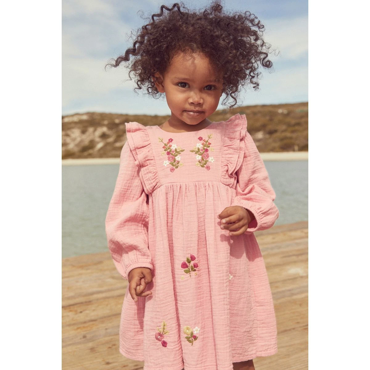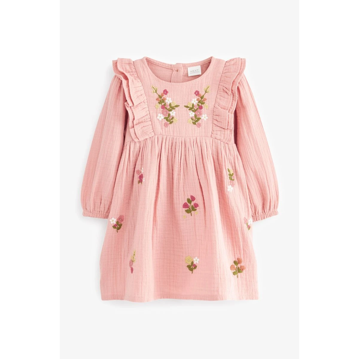Robe brodée à manches longues rose NEXT