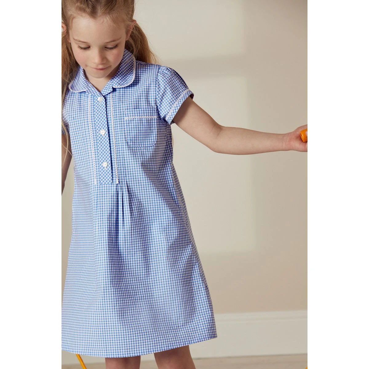 Robe d’école vichy à boutons et dentelle bleu moyen NEXT