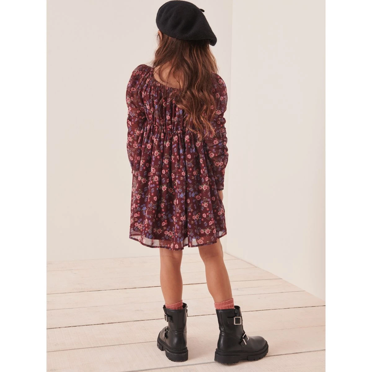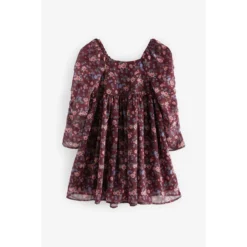 Robe mousseline à manches froncées marron NEXT
