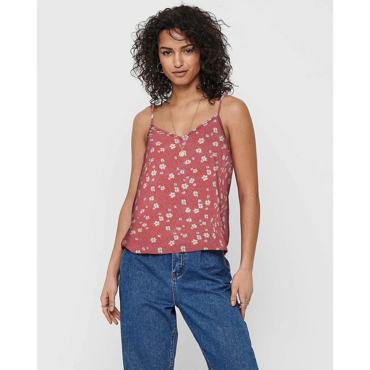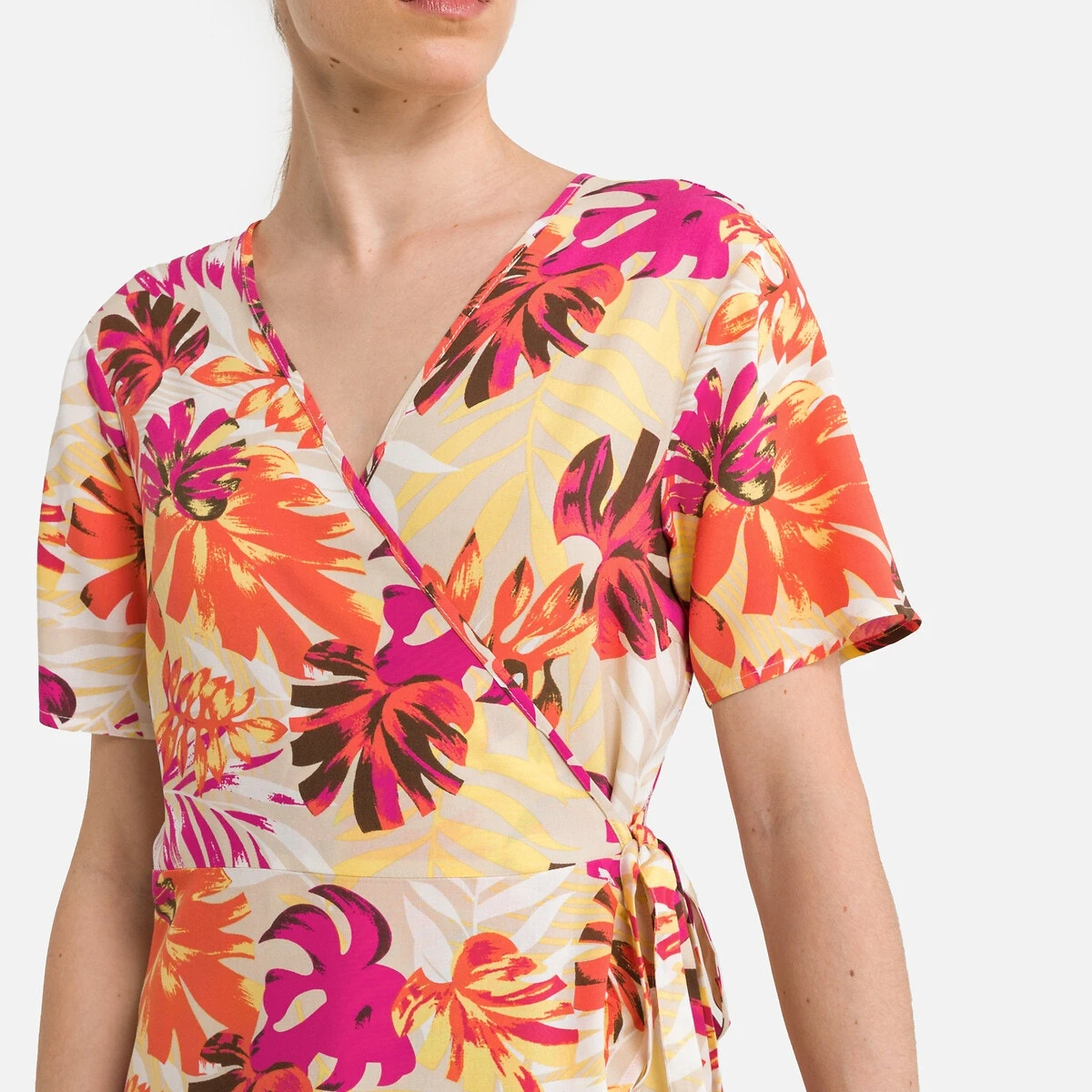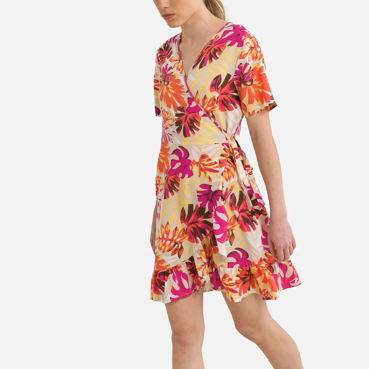 Robe courte imprimé feuillage, col V imprimé fond beige ONLY