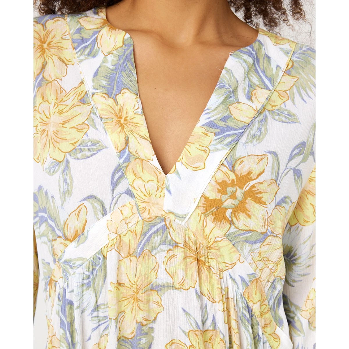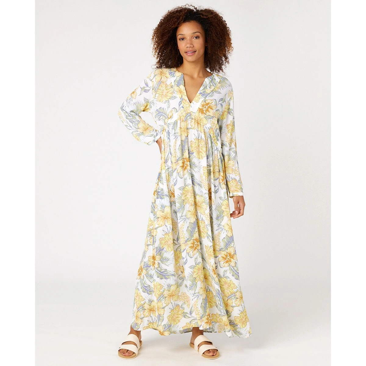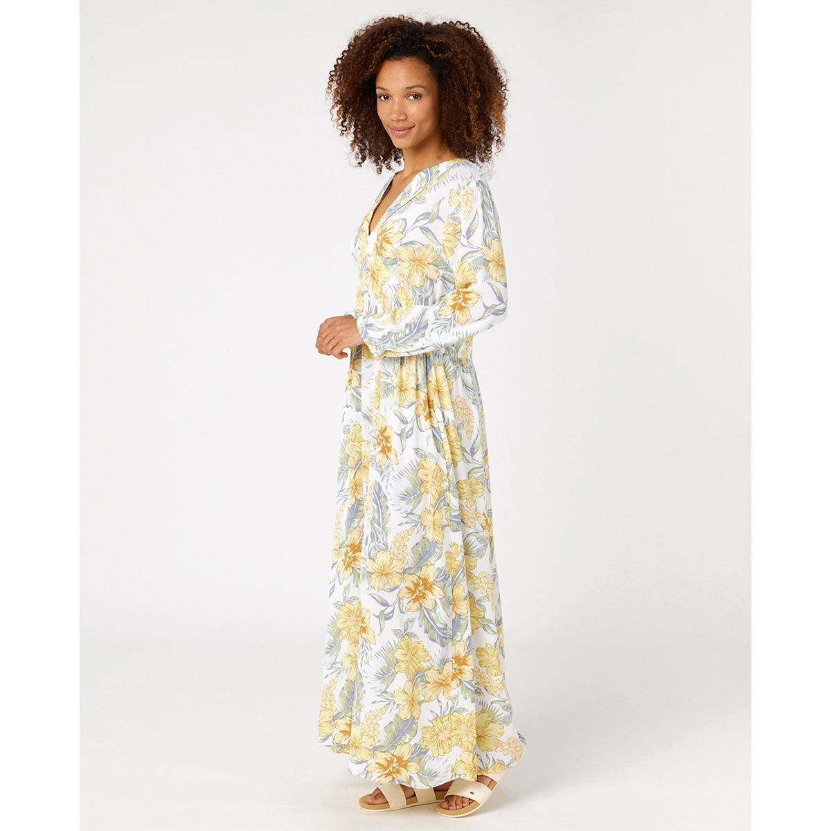 Avec la robe longue Always Summer Kaftan, vous serez la princesse de la plage cet été! Cette robe Rip Curl a des manches longues et un décolleté en V avec une taille ceintrée et est évasée dans la longueur. On adore son imprimé fleuri vintage, et sa matière légère en Viscose Ecovero. Disponible en gold ou blanc_