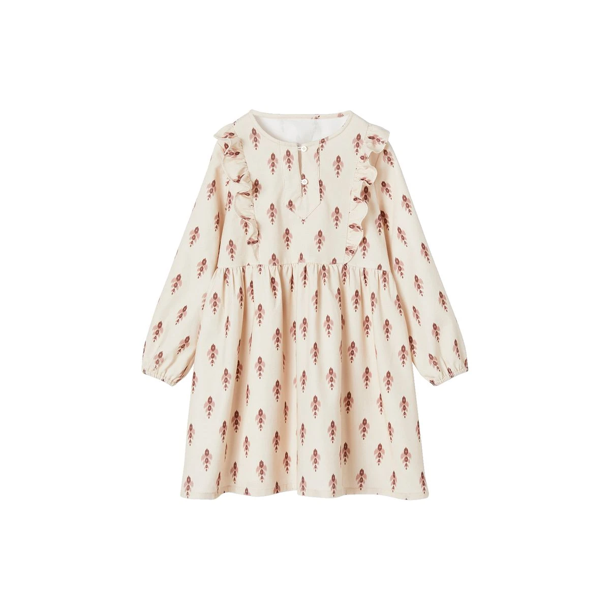 Robe à volants en velours imprimé beige poudré VERTBAUDET