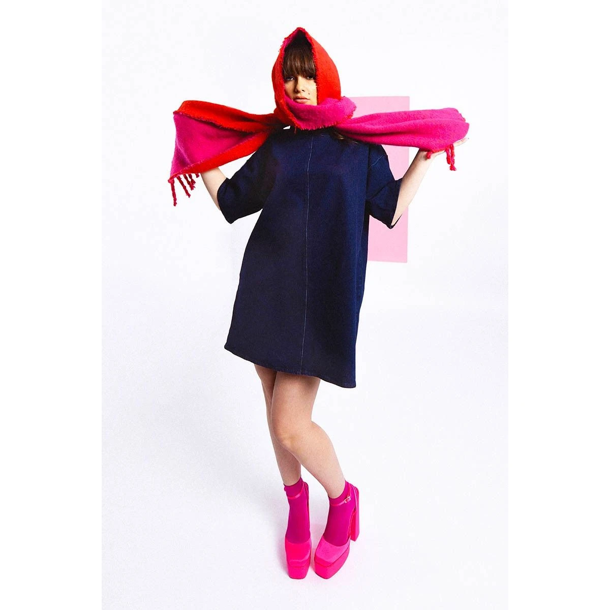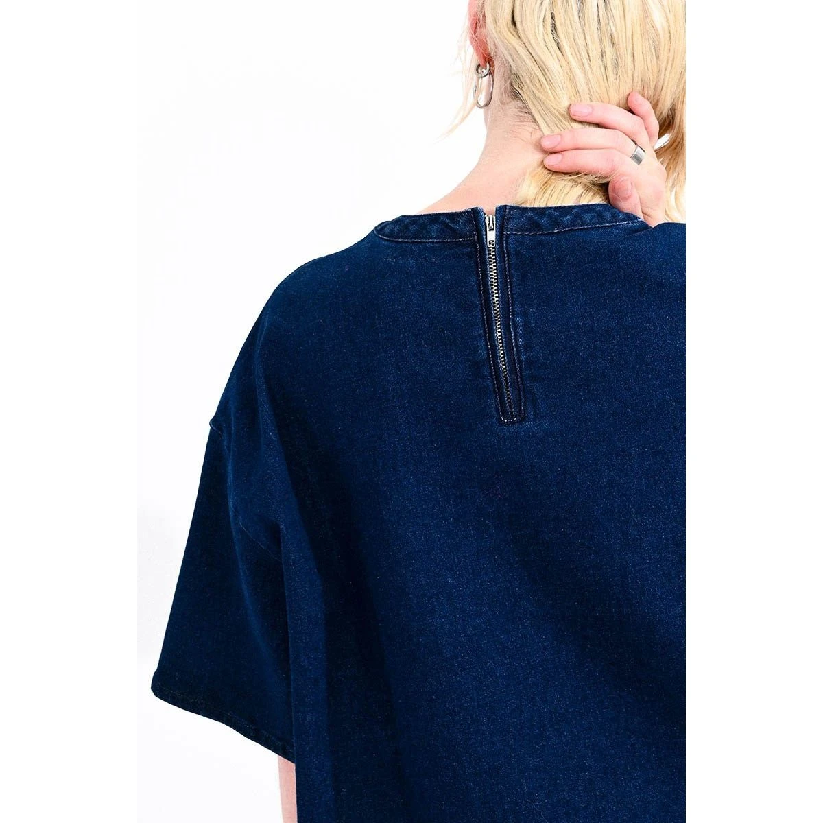 Robe loose et courte en jean brut, petit zippé dans la nuque, emmanchure basse et courte. Longueur : 85cm Taille S