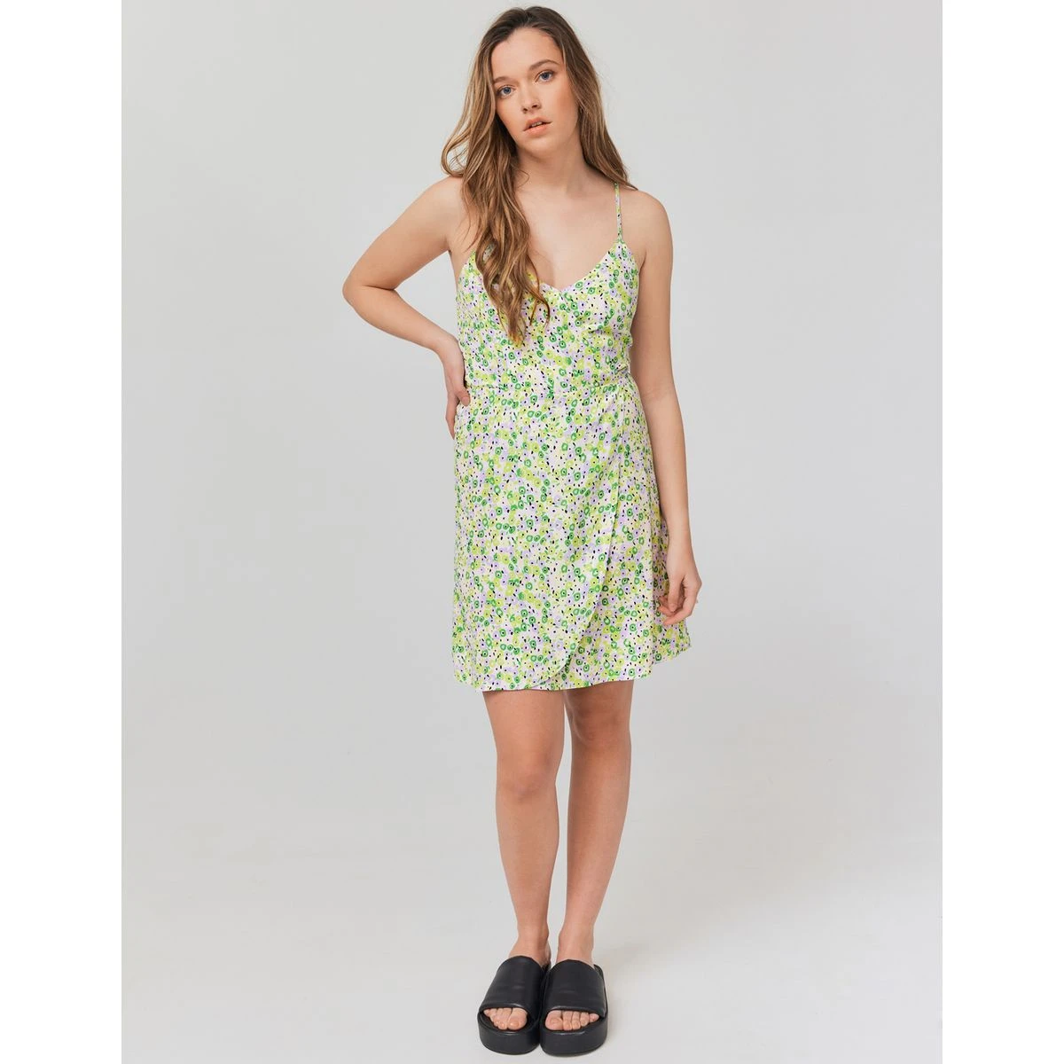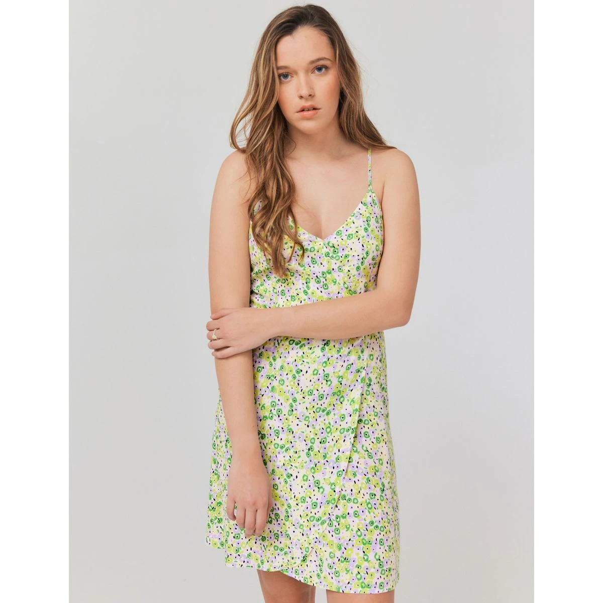 Robe courte cache coeur imprimée – Imprimé fleurs – Fines bretelles réglables – Encolure cache coeur – Forme portefeuille – Smock dos – Dispose d’une petite pression poitrine TAILLE ET COUPE – Coupe droite – La mannequin porte une taille S et mesure 1m75 BZB C.