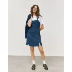 Robe Ă bretelles en tweed – DĂ©tails tissu enduit bretelles – Bretelles rĂ©glables par boutons – Fentes sur le bas de robe – Boutons fantaisies sur le devant – Ouverture dos par fermeture Ă©clair invisible – A porter en ensemble avec la surchemise 2004080 pour un total look coordonnĂ© TAILLE ET COUPE -Coupe Ă©vasĂ©e -La mannequin porte une taille 36 et mesure 1m77