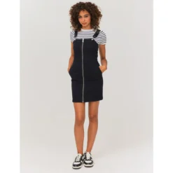 Robe courte en denim – Robe forme salopette – Bretelles rĂ©glables – Fermeture par fermeture Ă©clair tout le long de la robe TAILLE ET COUPE – Coupe droite BZB C.