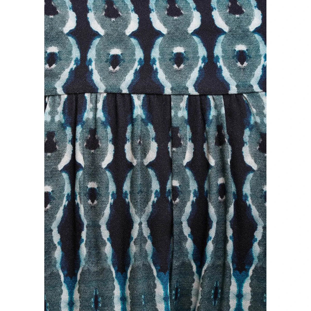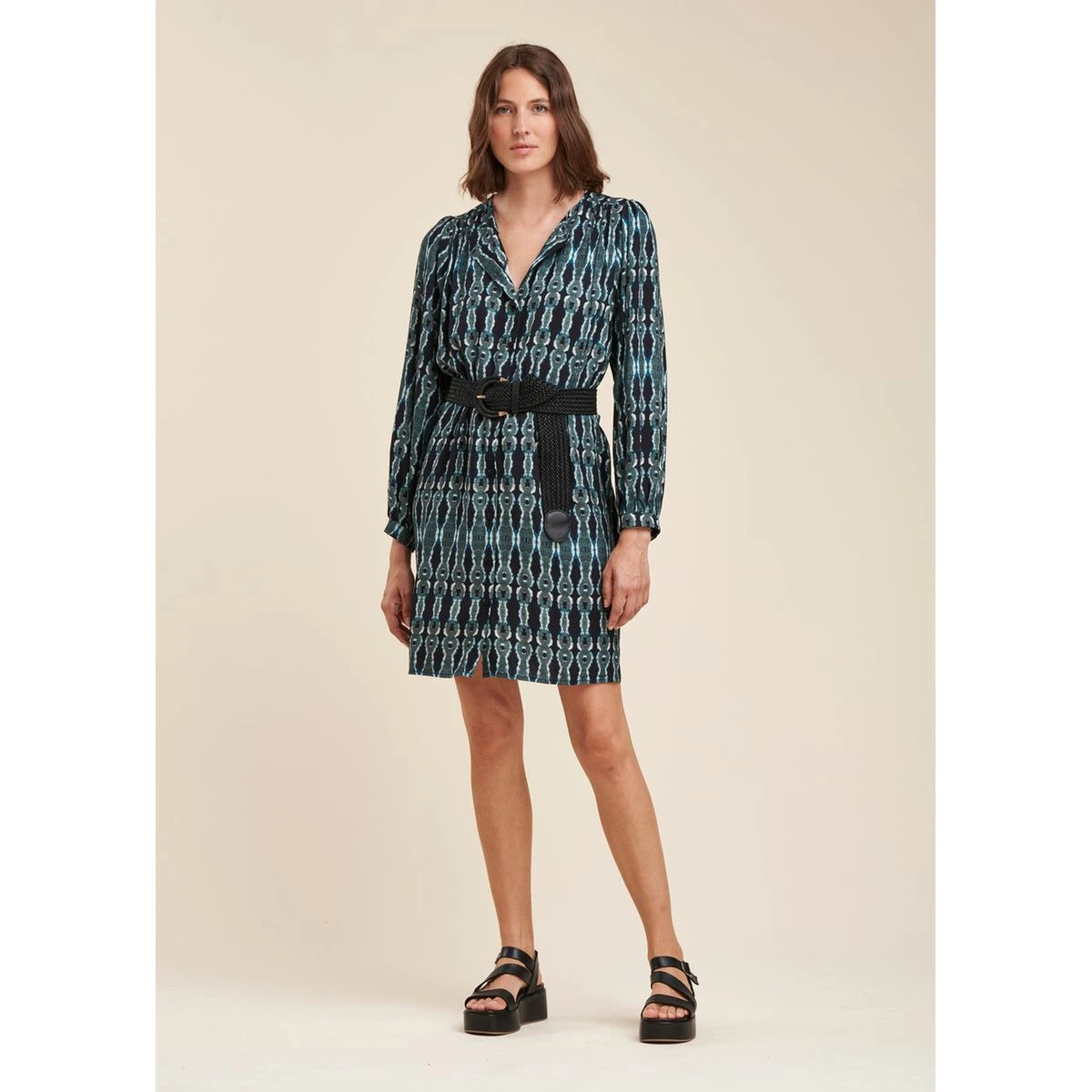 Détails du Produit : Robe courte ample boutonnée à imprimé tie & dye, encolure ronde, manches longues larges et bouffantes avec bracelets boutonnés, découpes épaules avec fronces, découpe dos avec fronces, ceinture à nouer. Longueur : 95 cm.