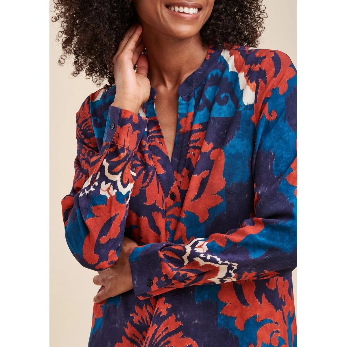 Robe courte coupe droite imprimée en viscose Ecovero bleu/auburn LA FEE MARABOUTEE