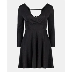 Robe courte fil textile à manches longues noir GREEN COAST