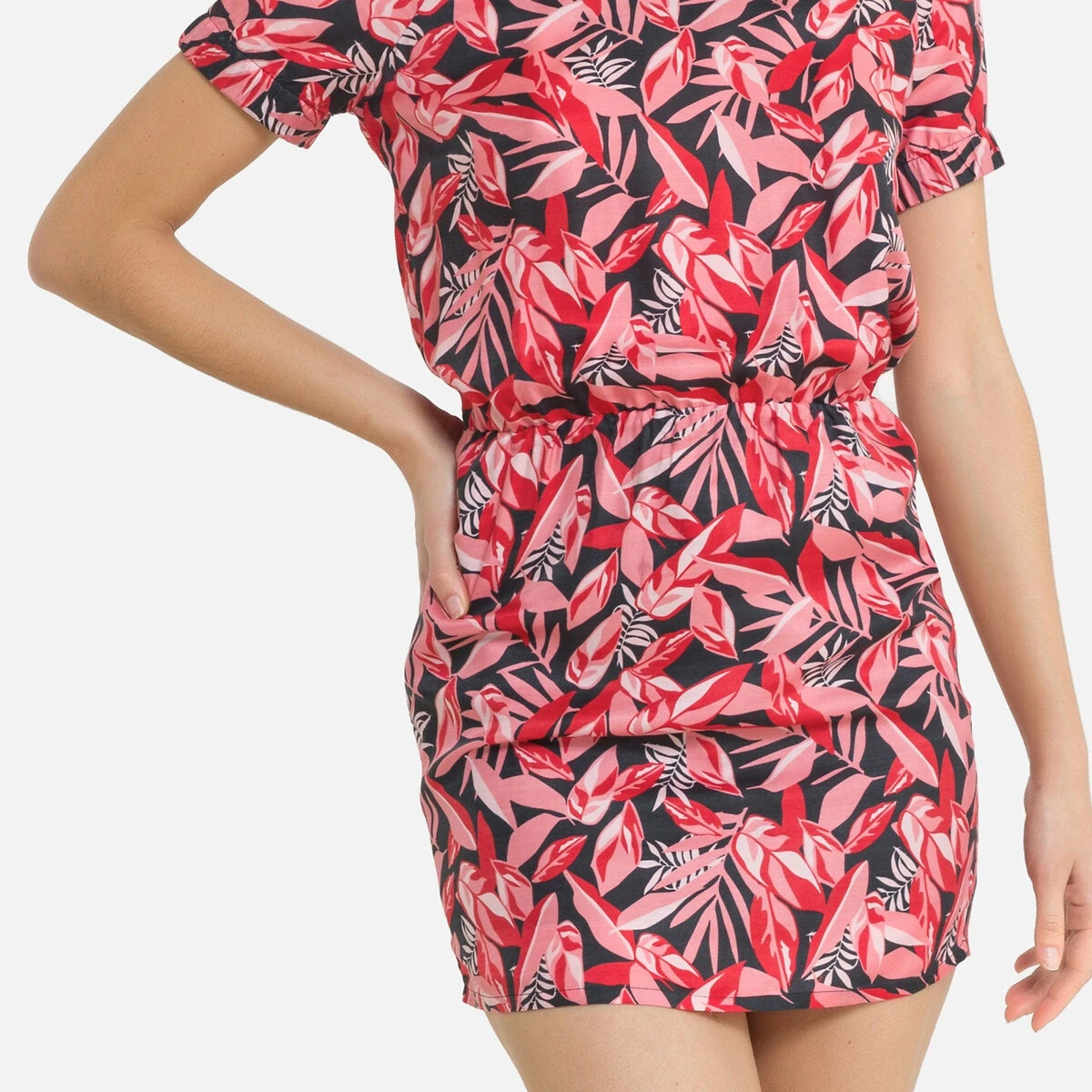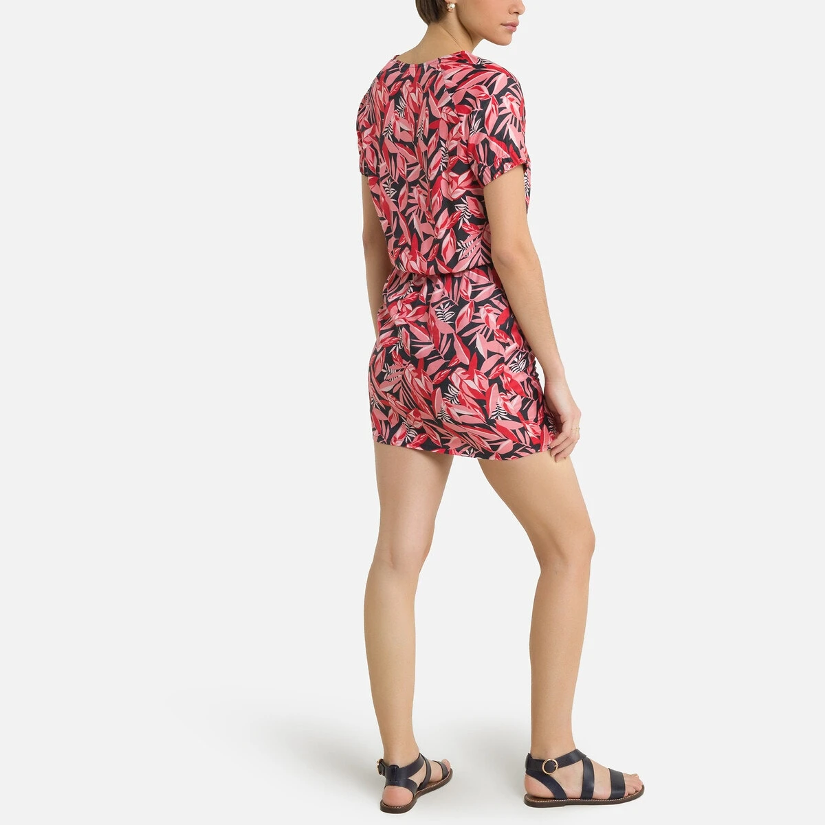 Robe courte imprimée, manches courtes imprimé rouge ICODE