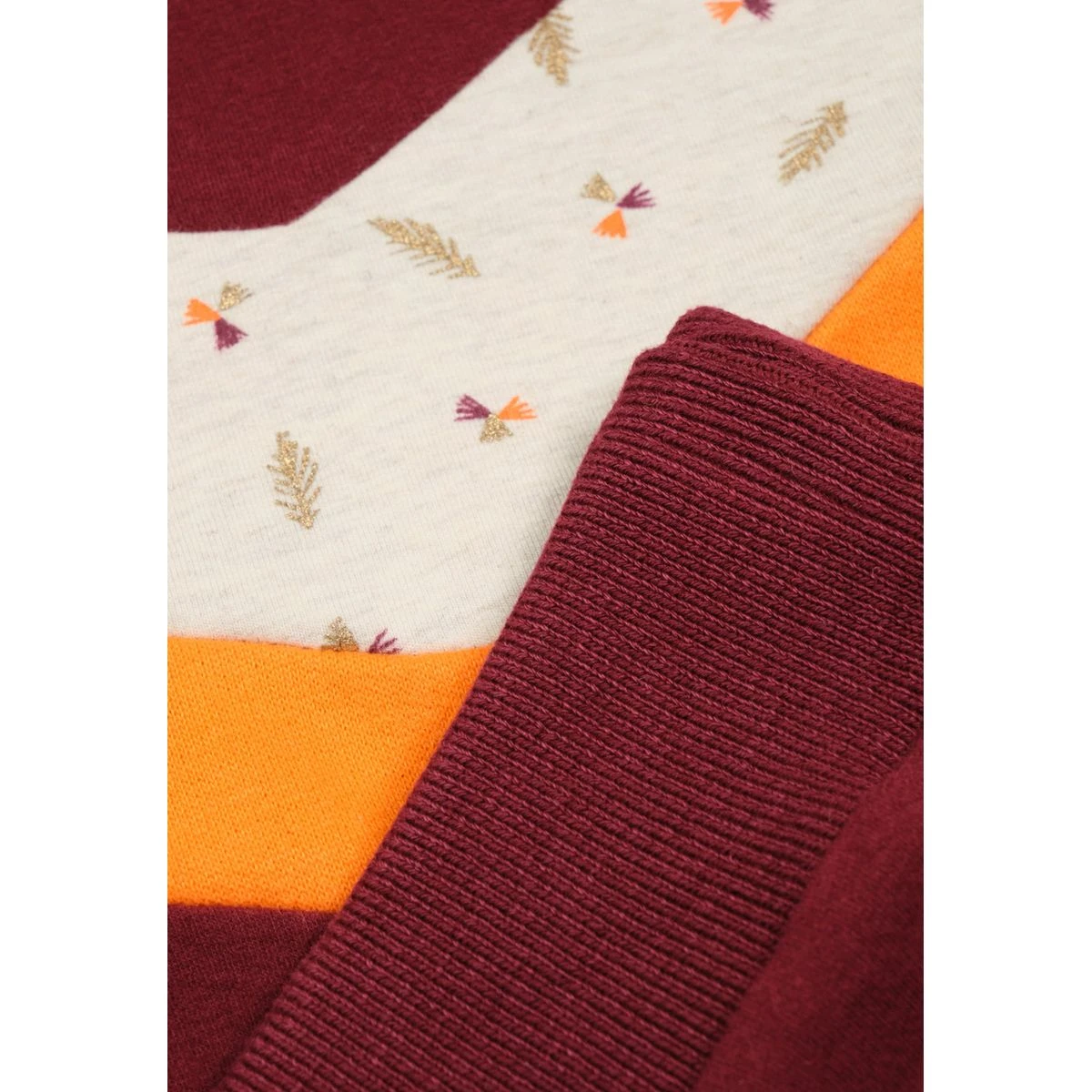 Description :Cette robe longue en matière sweatshirt ira à ravir aux audacieuses qui comptent bien s’amuser cet hiver ! Super confortable, cette robe bordeaux et lignée orange et blanc/gris habille nos meilleurs moments de cette fin d’année.
