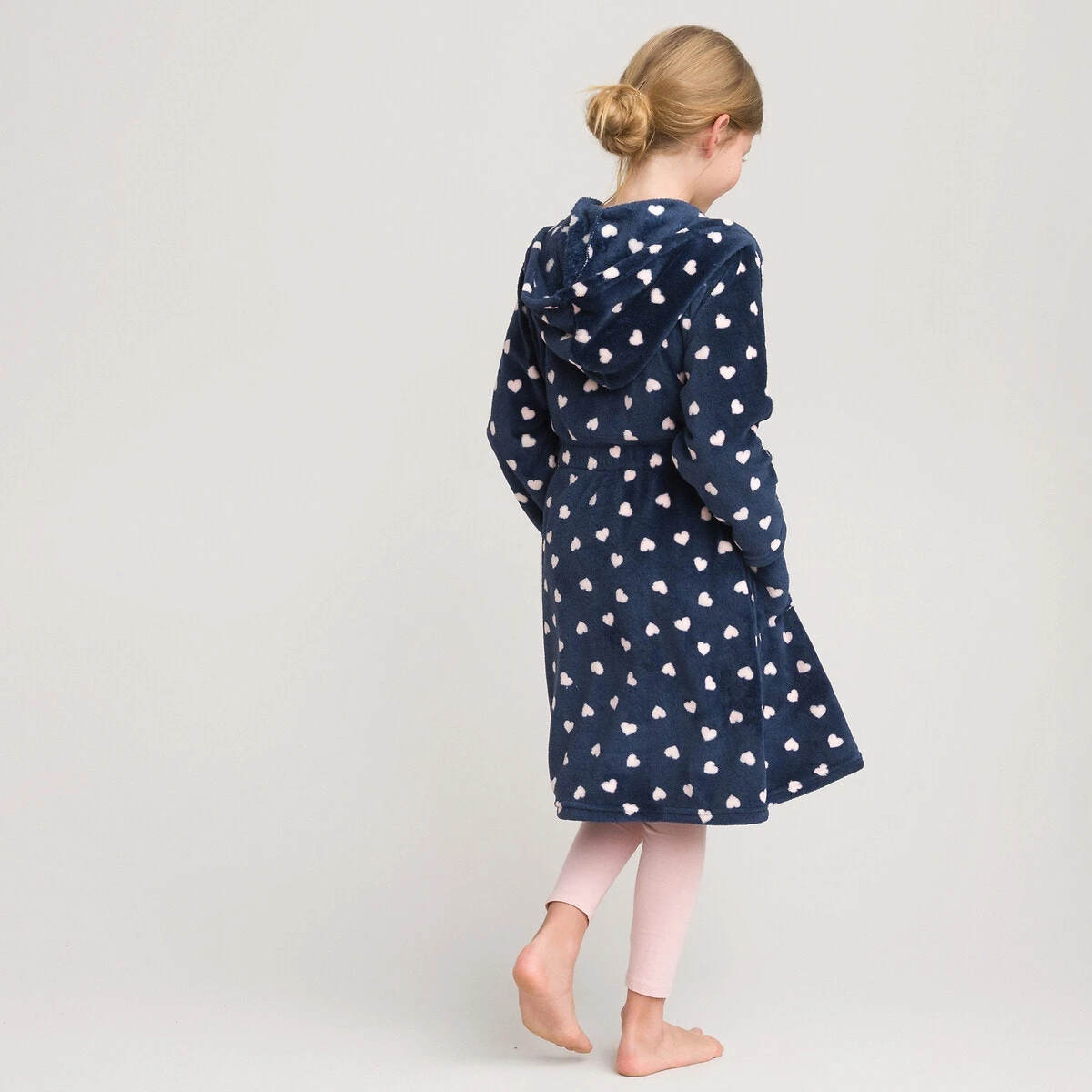Robe de chambre à capuche en polaire imprimé cœur bleu marine LA REDOUTE COLLECTIONS