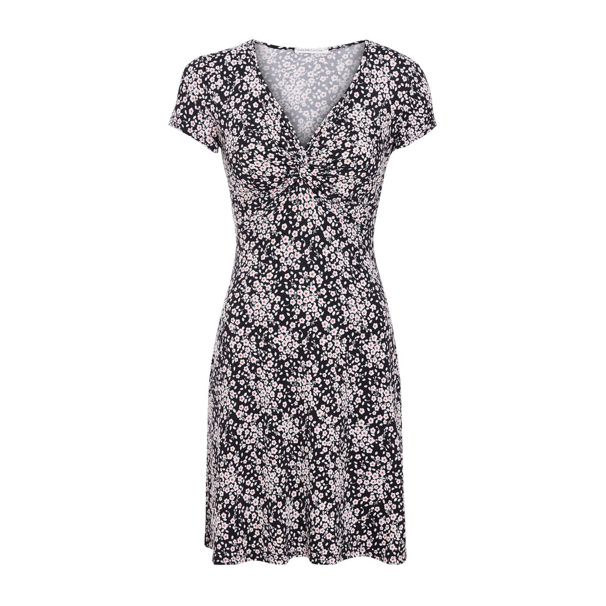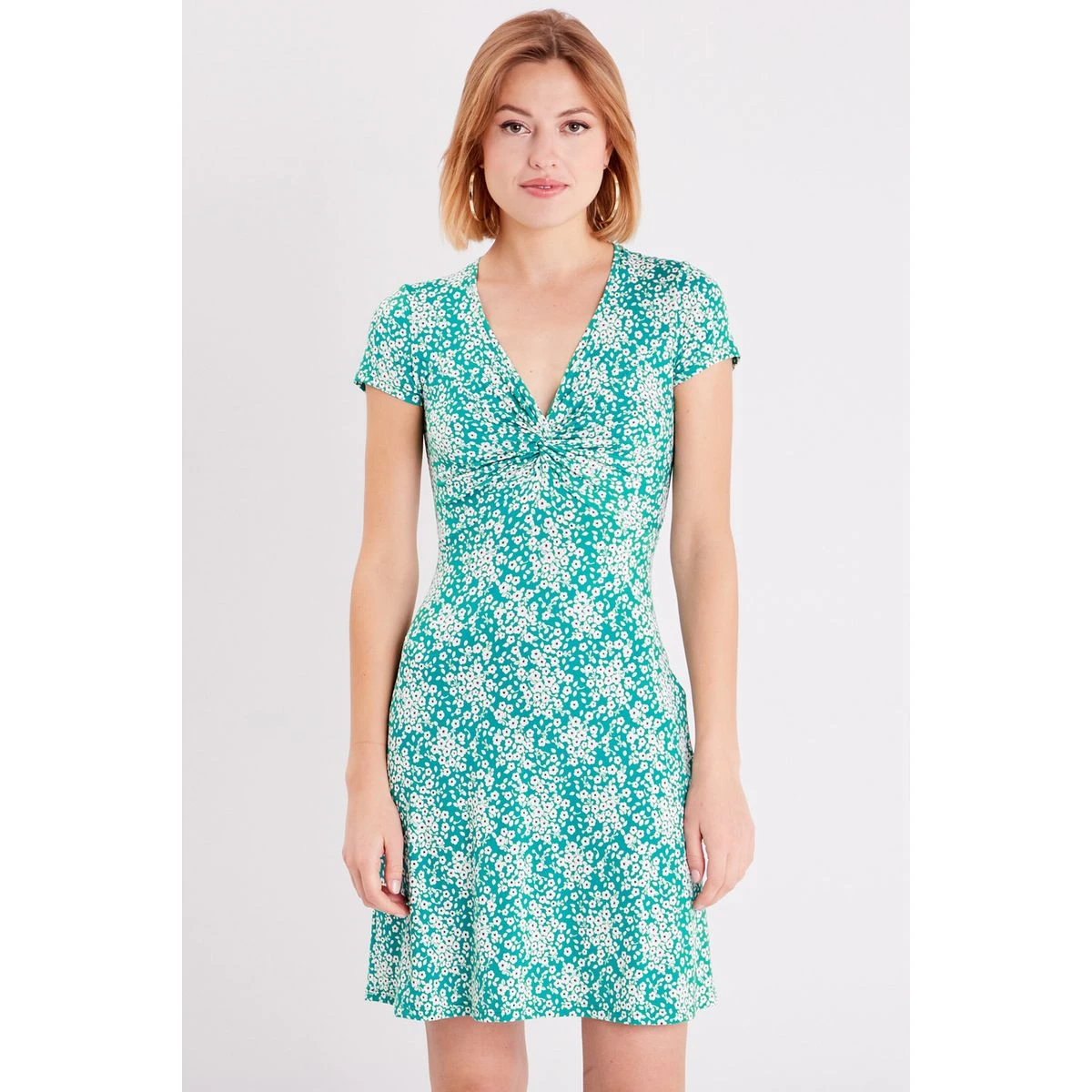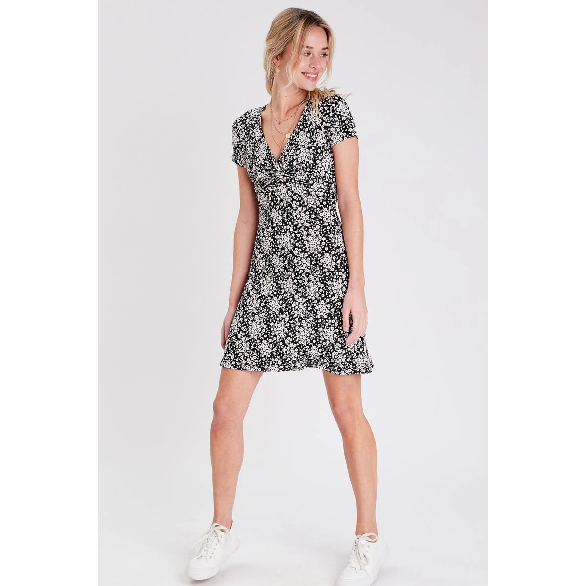 Robe évasée à manches courtes Coupe évasée Courte Col en V Manches courtes Détails effet plissé à l’encolure Le + mode : l’effet plissé