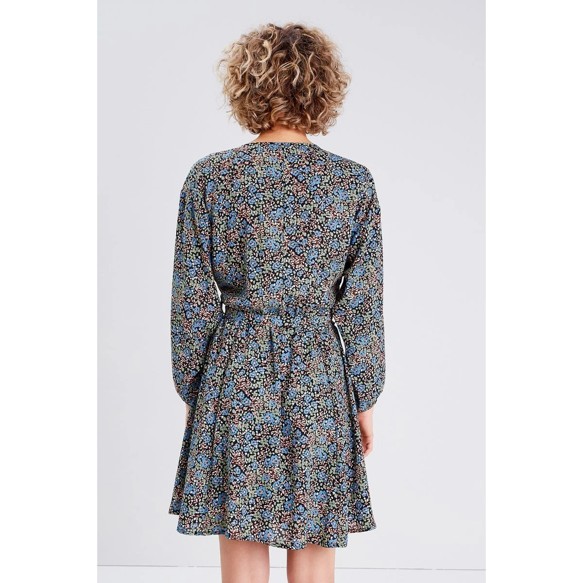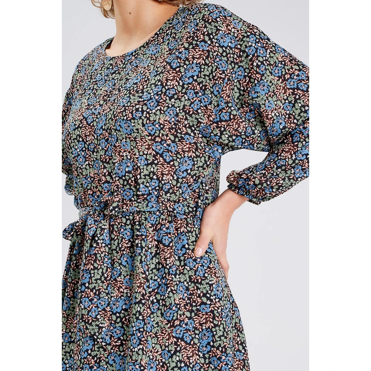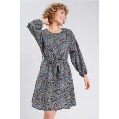 Robe évasée ceinturée Coupe évasée Courte Col rond Manches longues Taille à passants Ceinture à nouer