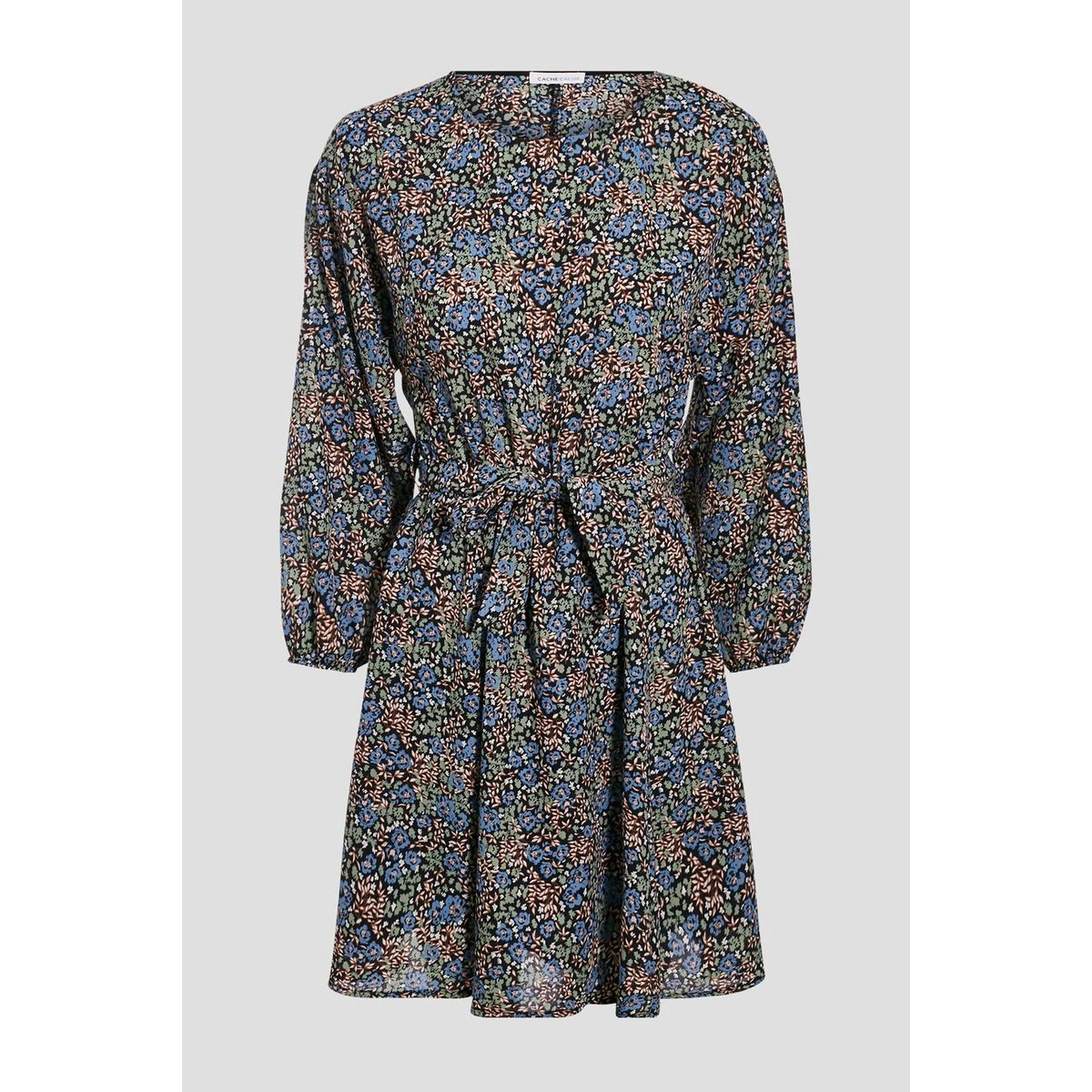 Robe évasée ceinturée denim noir CACHE CACHE