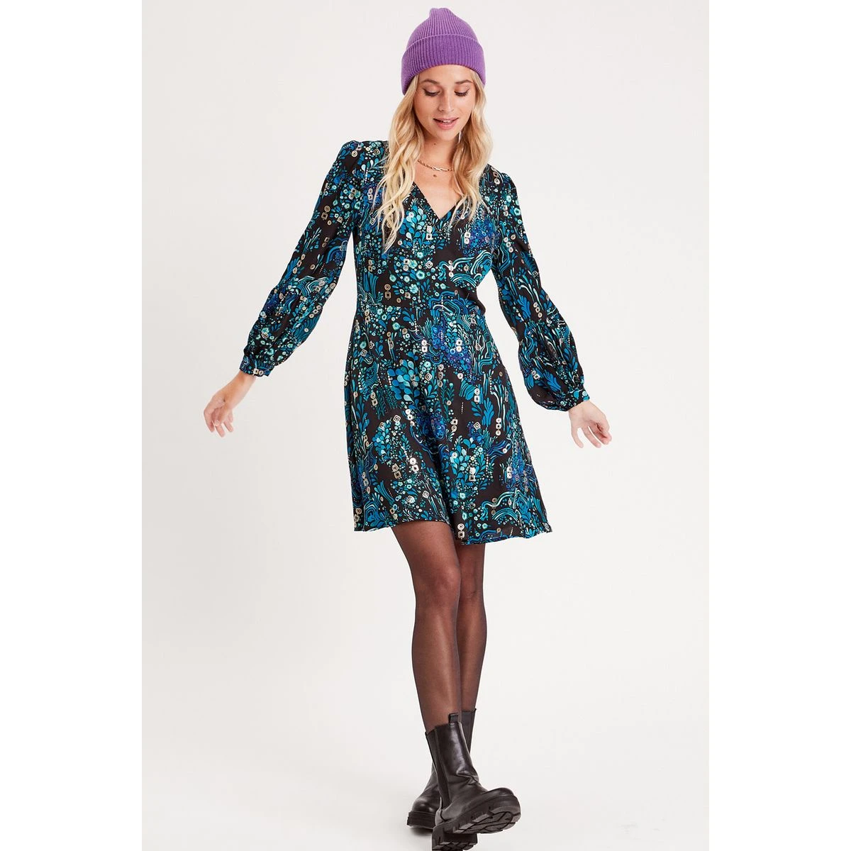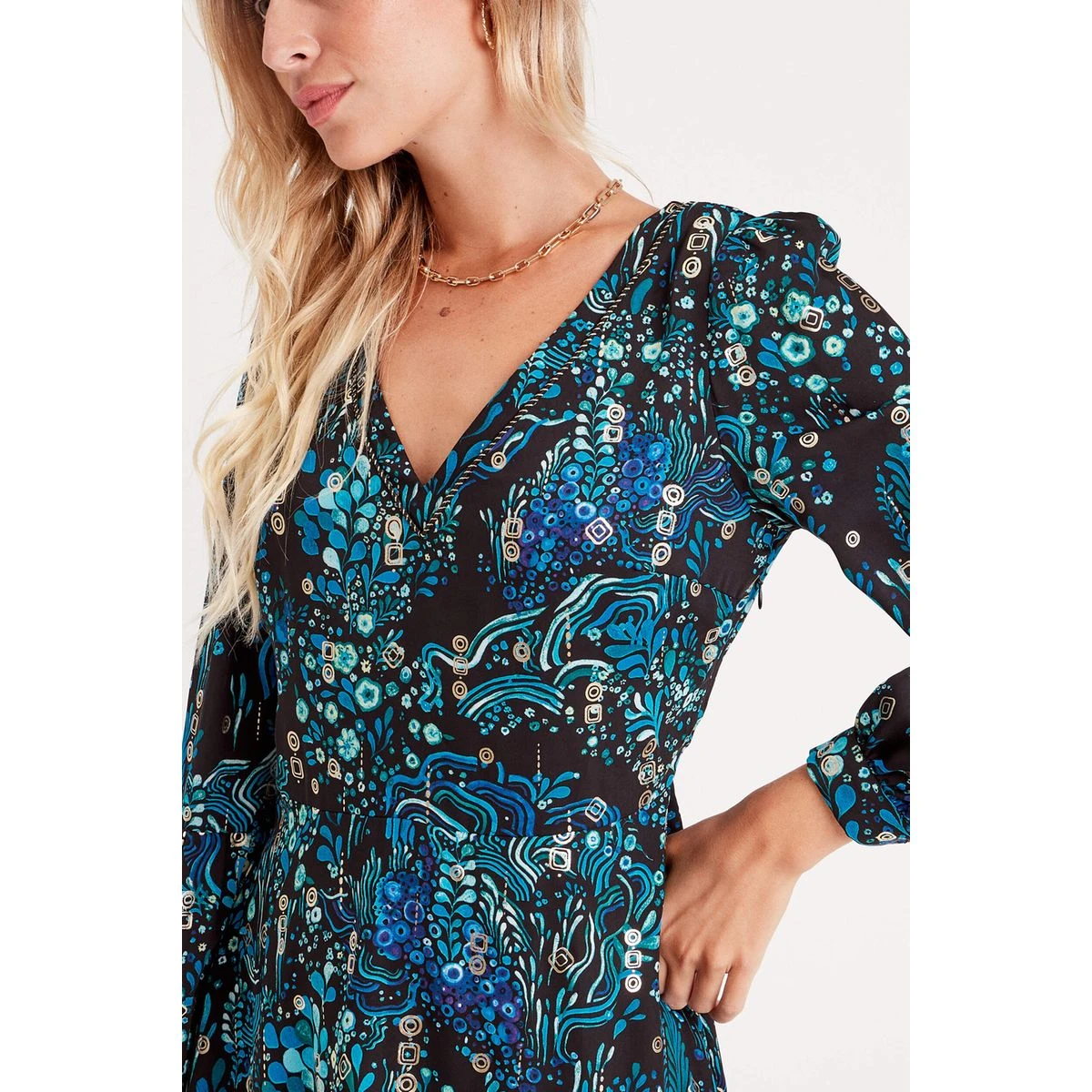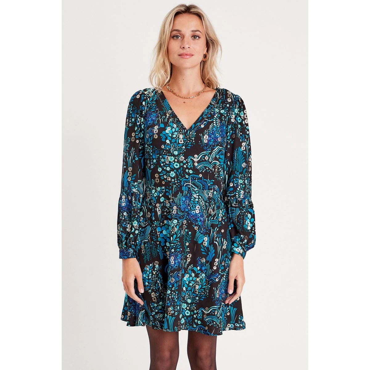 Robe évasée col en V Coupe évasée Courte Col en V Manches longues Liserés métallisés à l’encolure