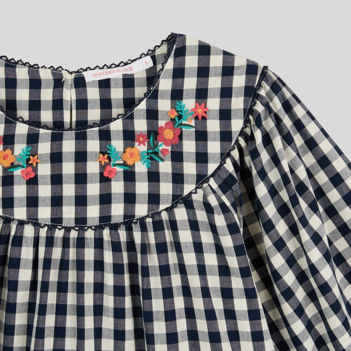 – Robe imprimée vichy à broderies fleurs – Col rond finition croquet – Manches courtes à finition élastiquée – Ouverture goutte-d’eau boutonnée sous lichette – Matière légère – Ourlet à basque – OEKO-TEX : label international qui garantit l’absence de substances indésirables pour la santé et la peau. – Numéro de modèle : T31790157