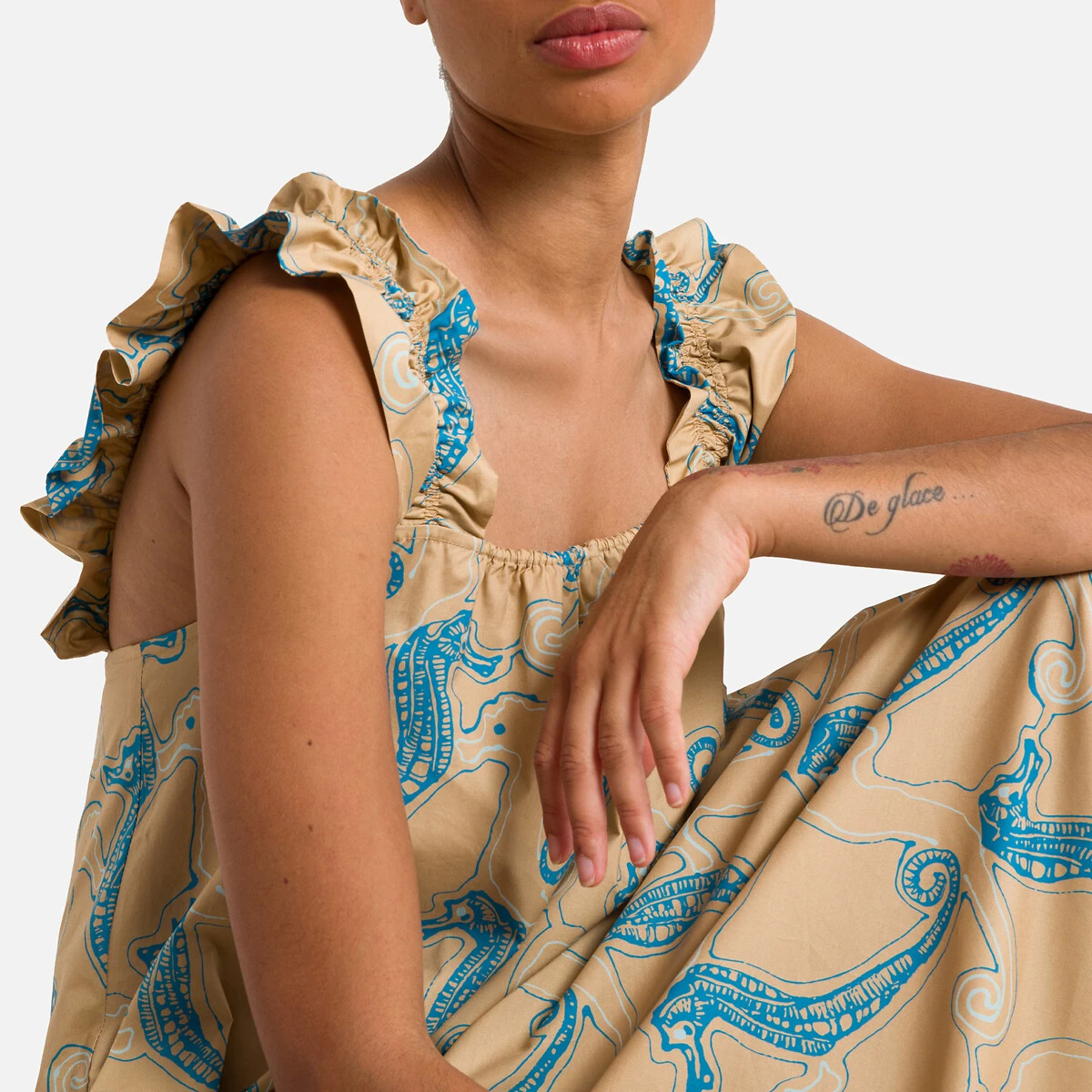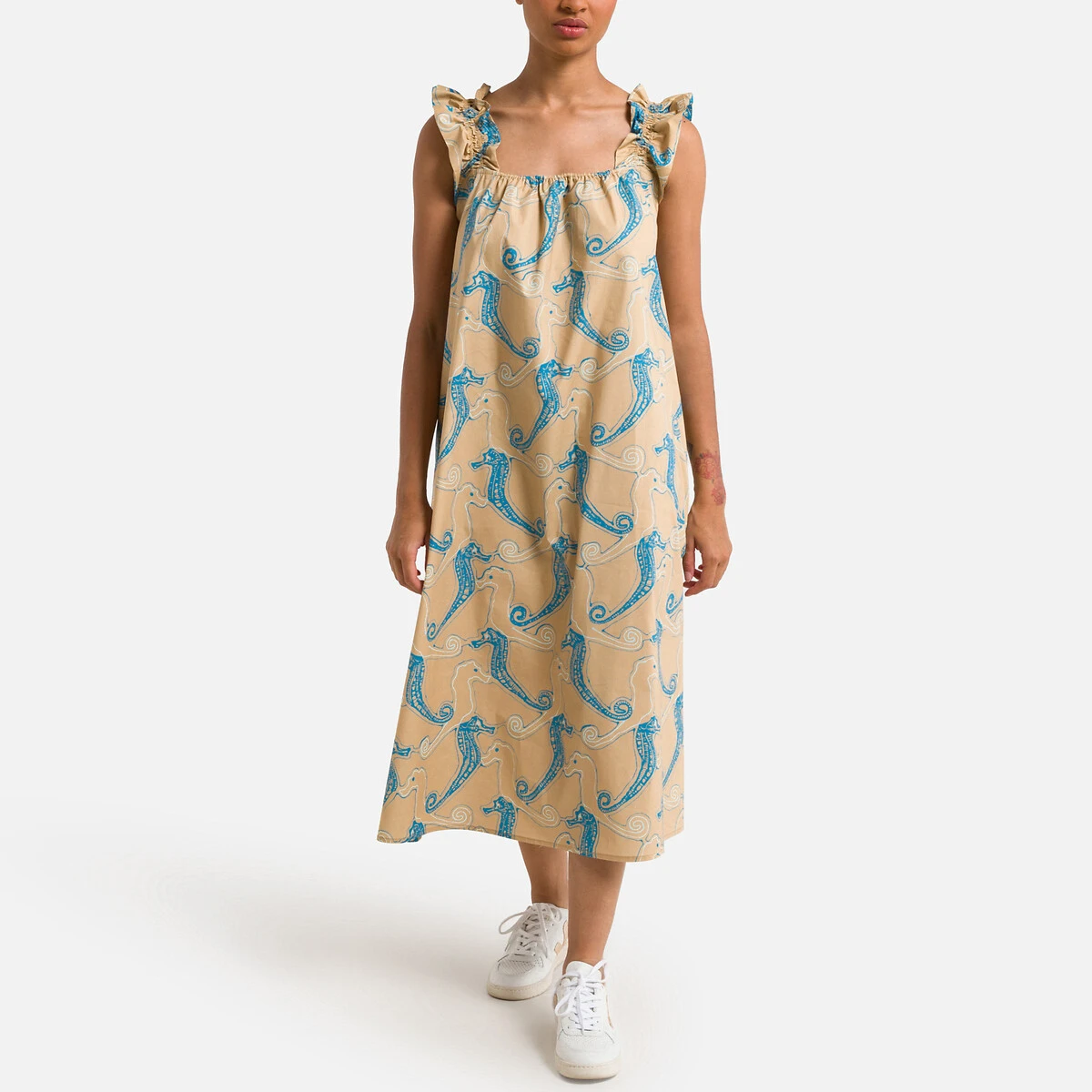 Robe longue droite, sans manches imprimé bleu SAMSOE AND SAMSOE
