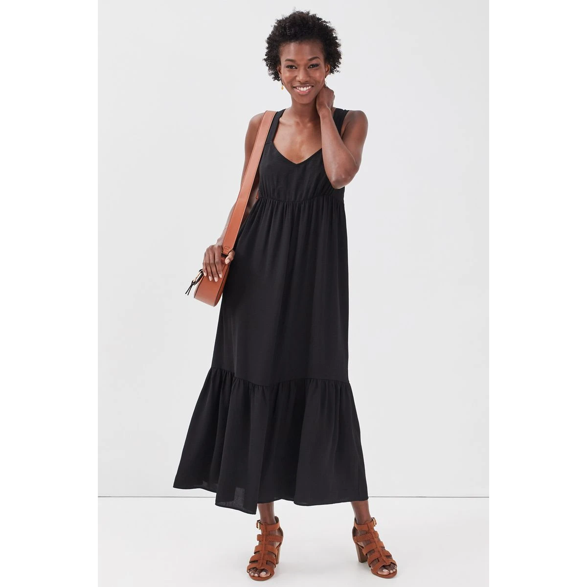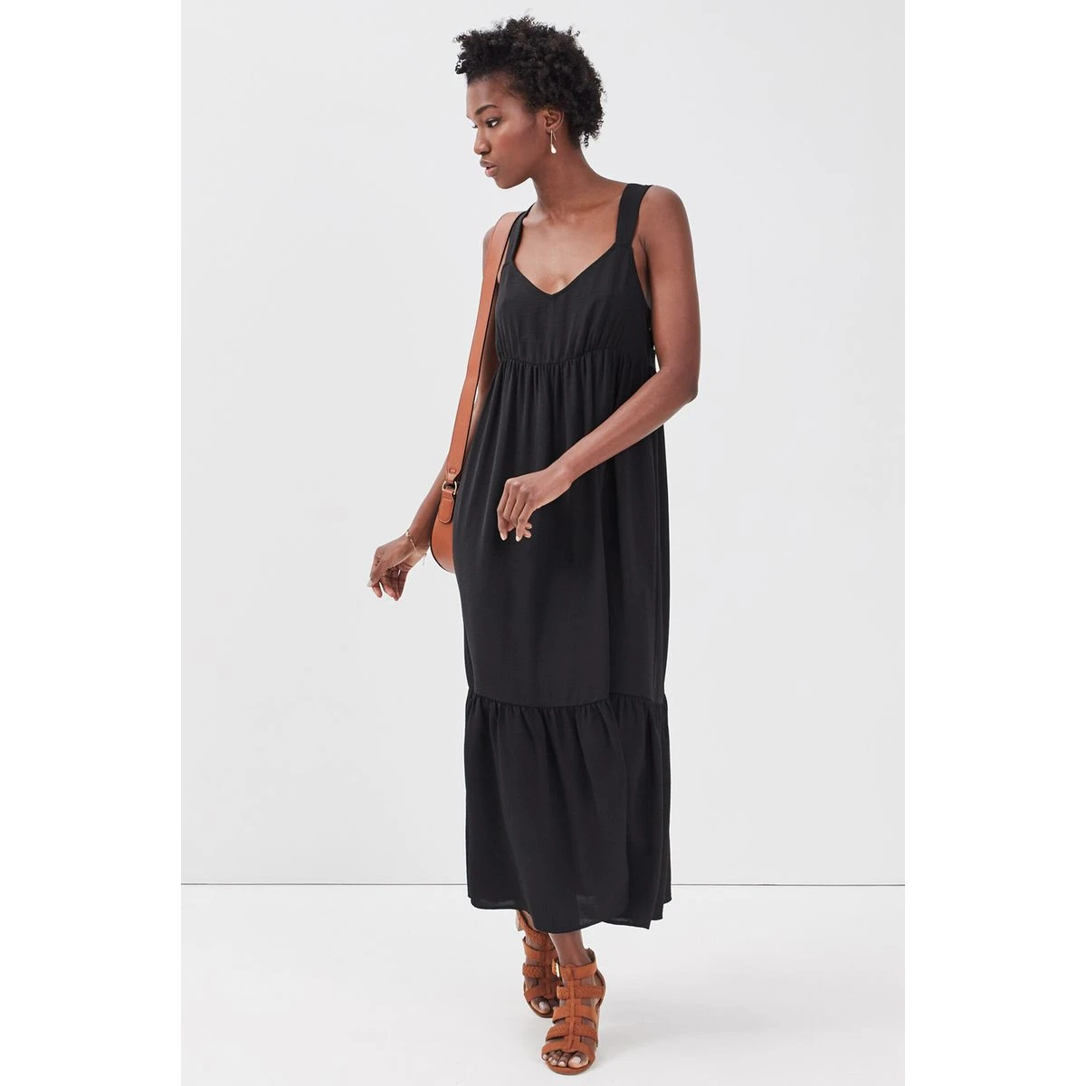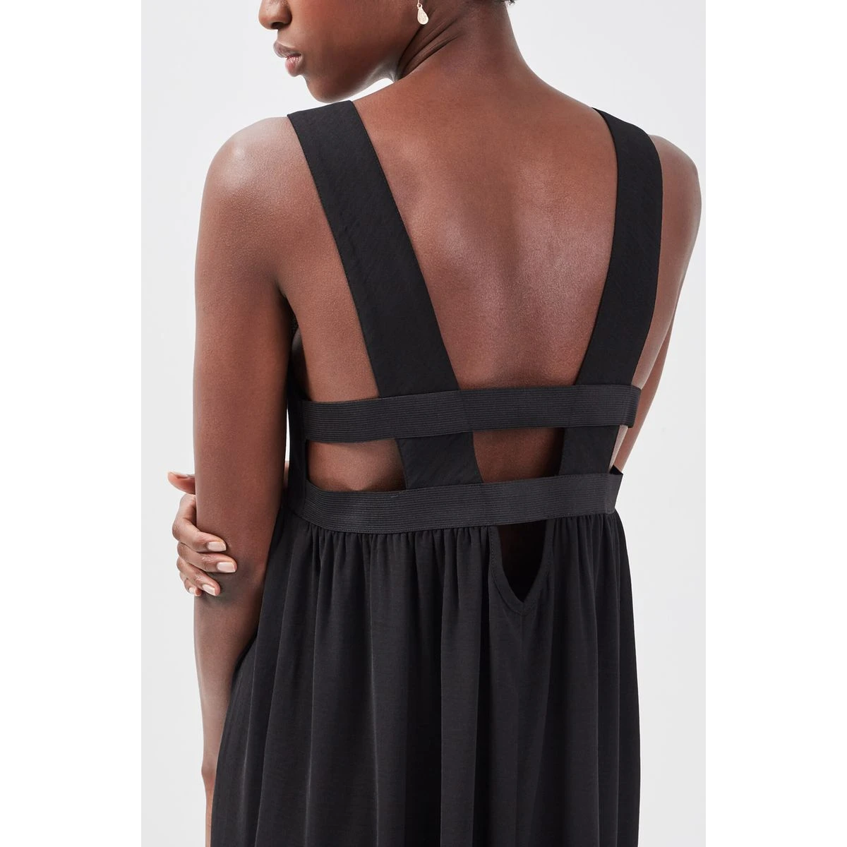 Robe longue évasée bretelles Coupe évasée Longue Col en V Bretelles larges Bandes sur les côtés Empiècements volantés sous la poitrine