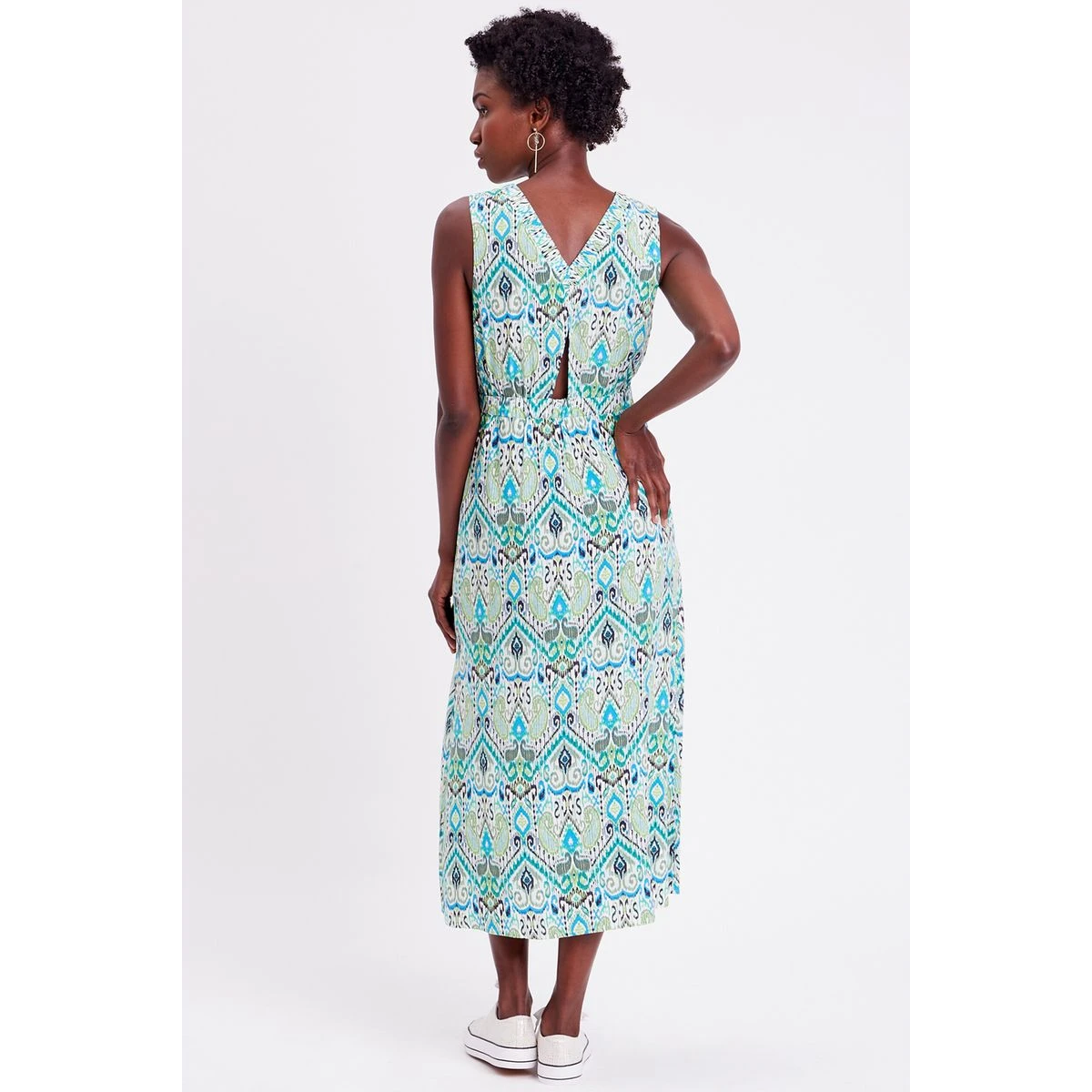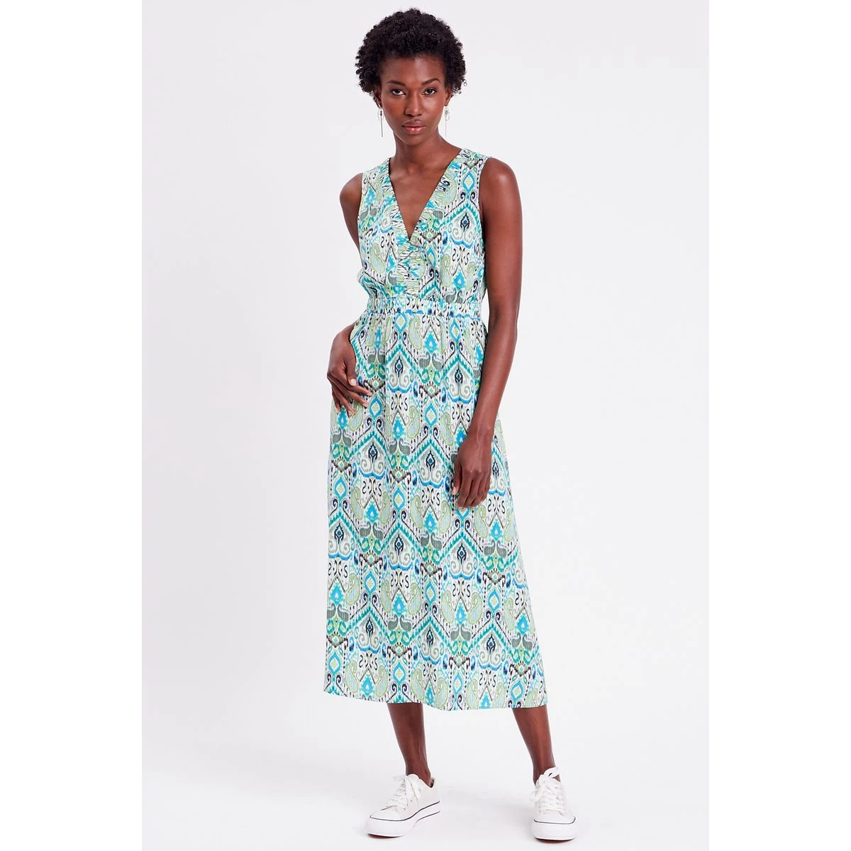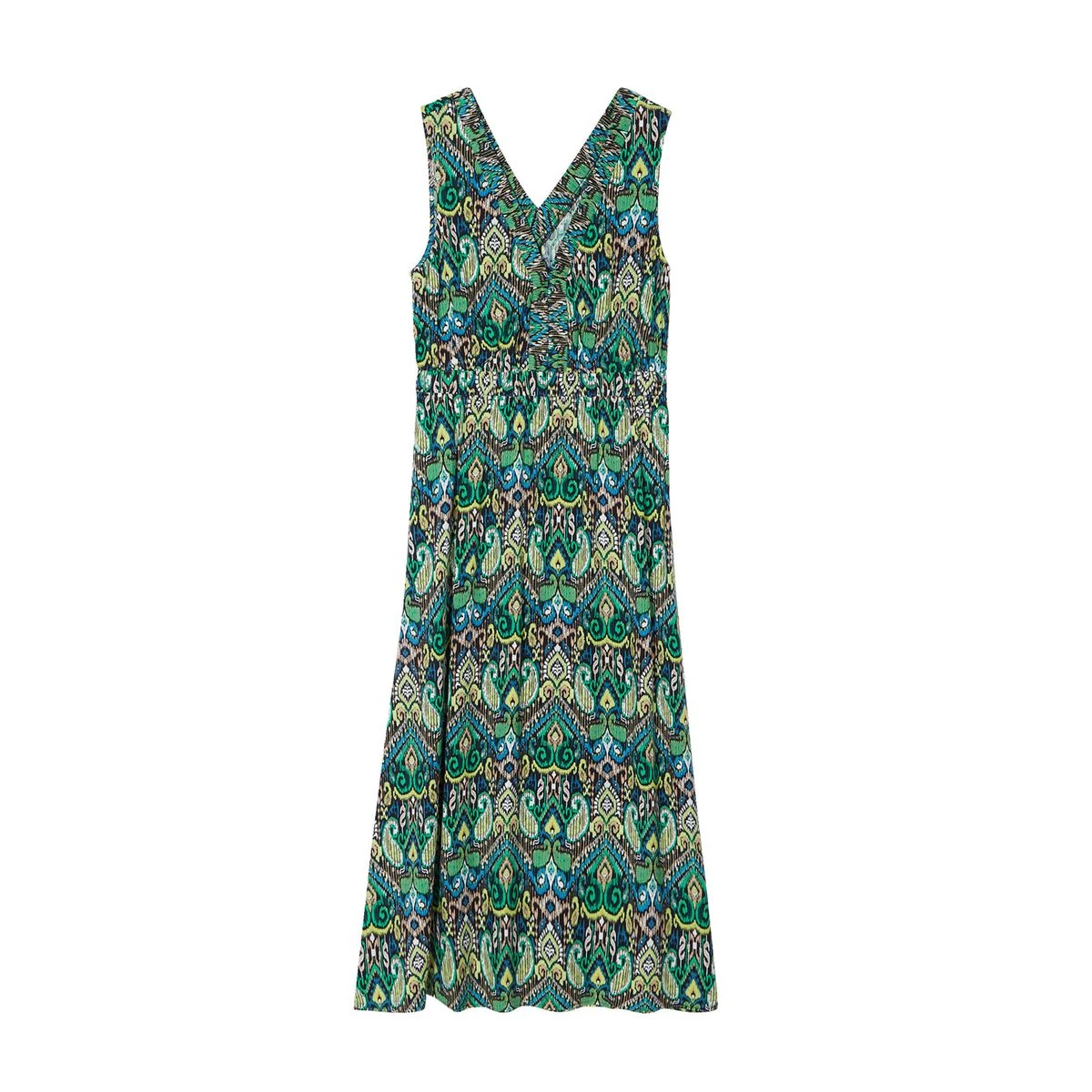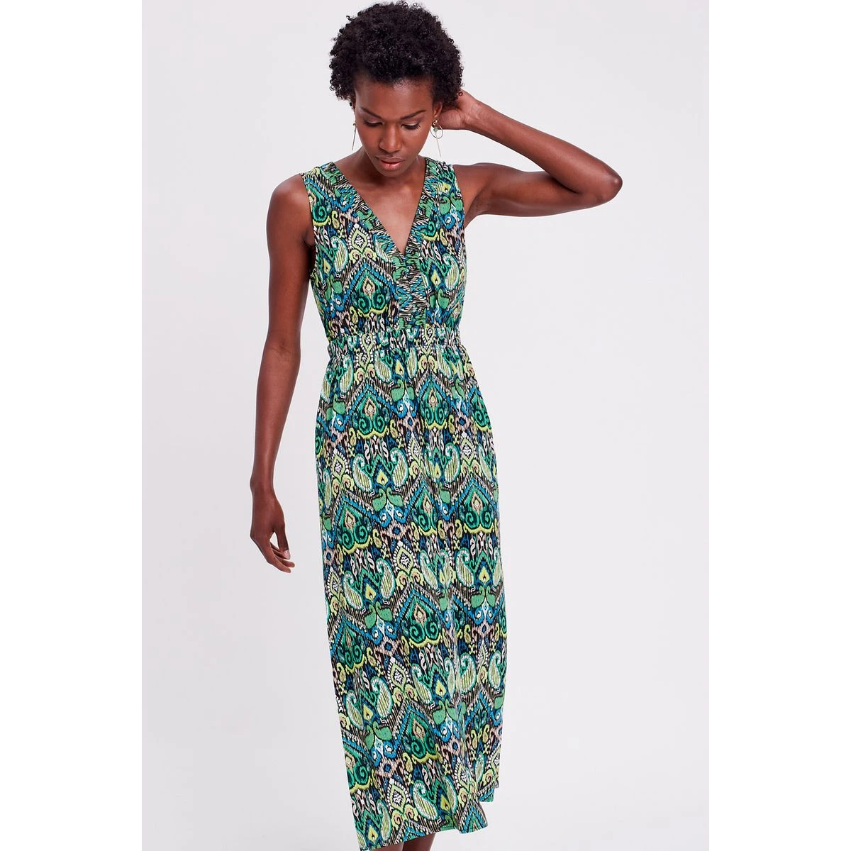 Robe longue évasée col en V – CACHE CACHE