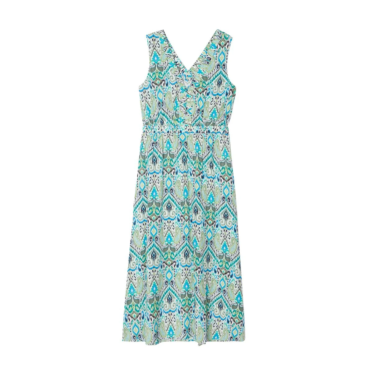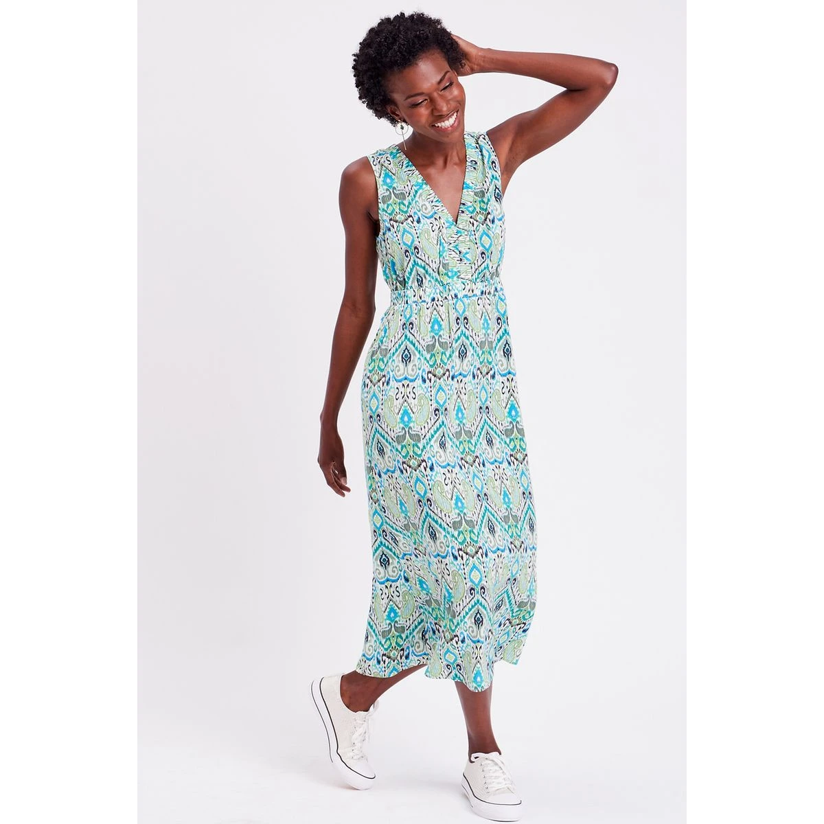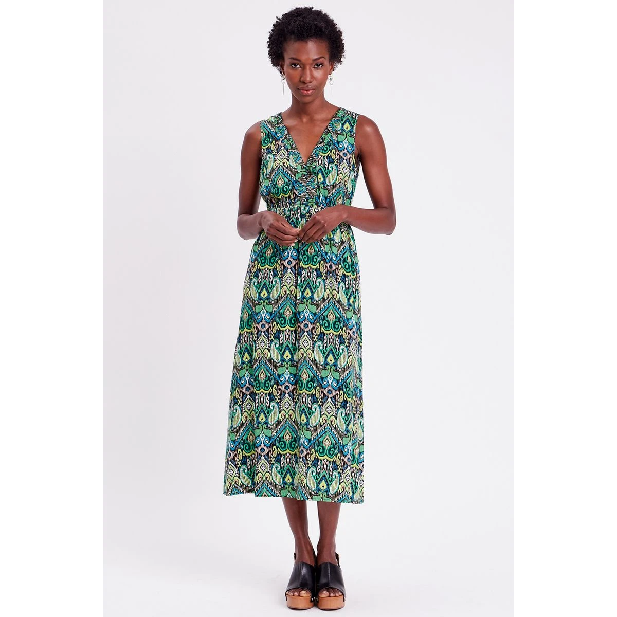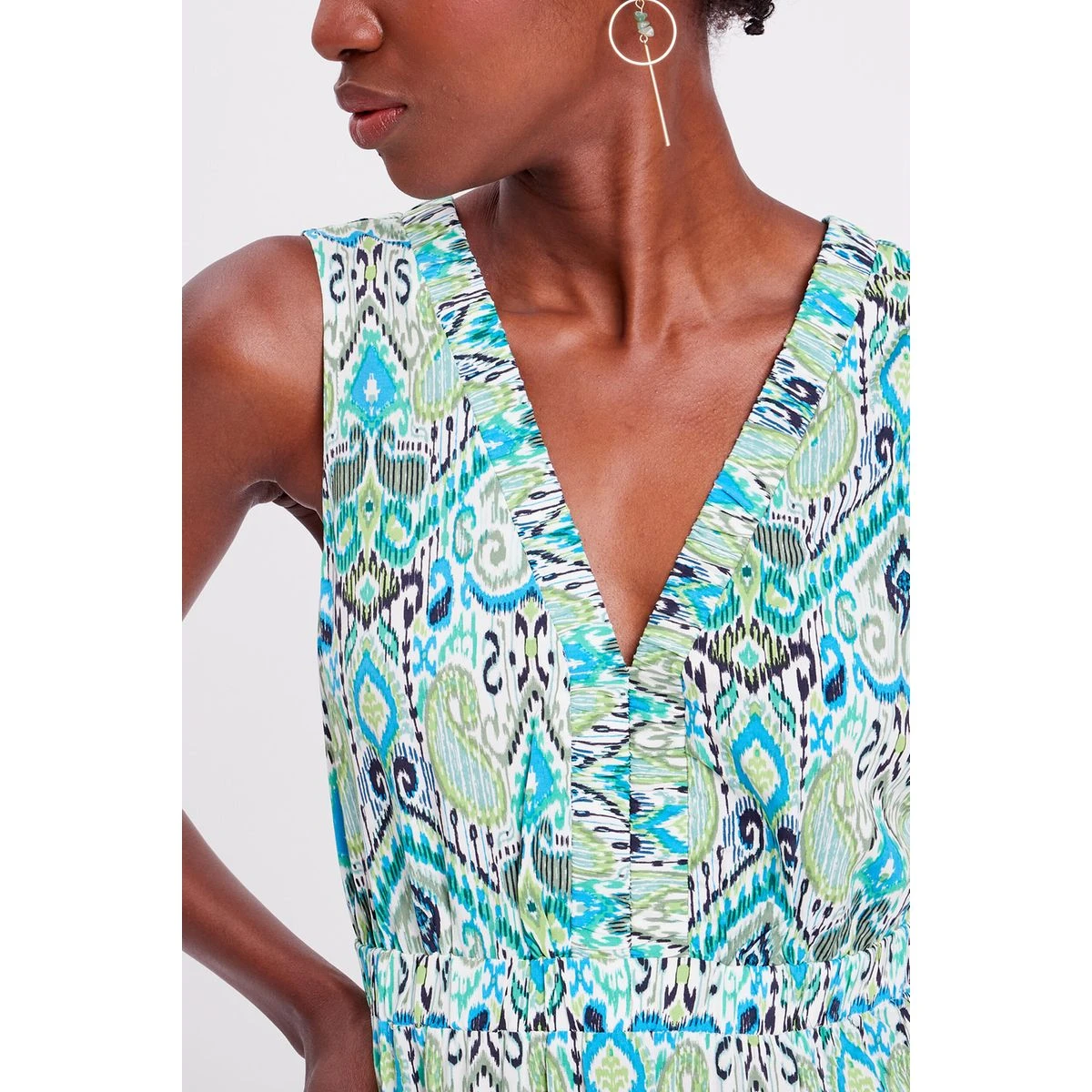 Robe longue évasée col en V – CACHE CACHE