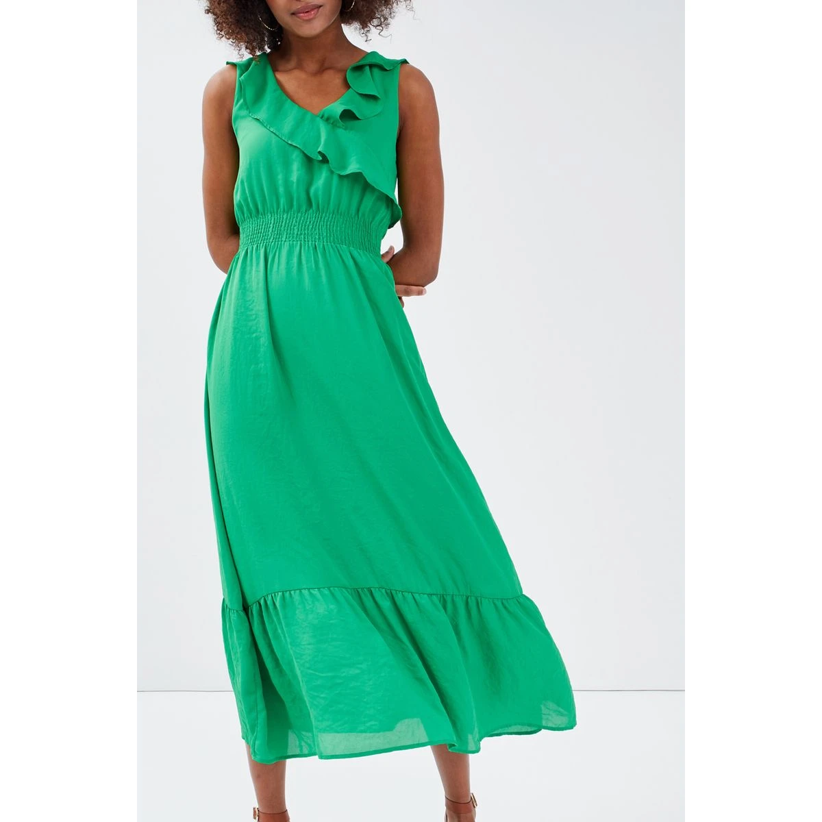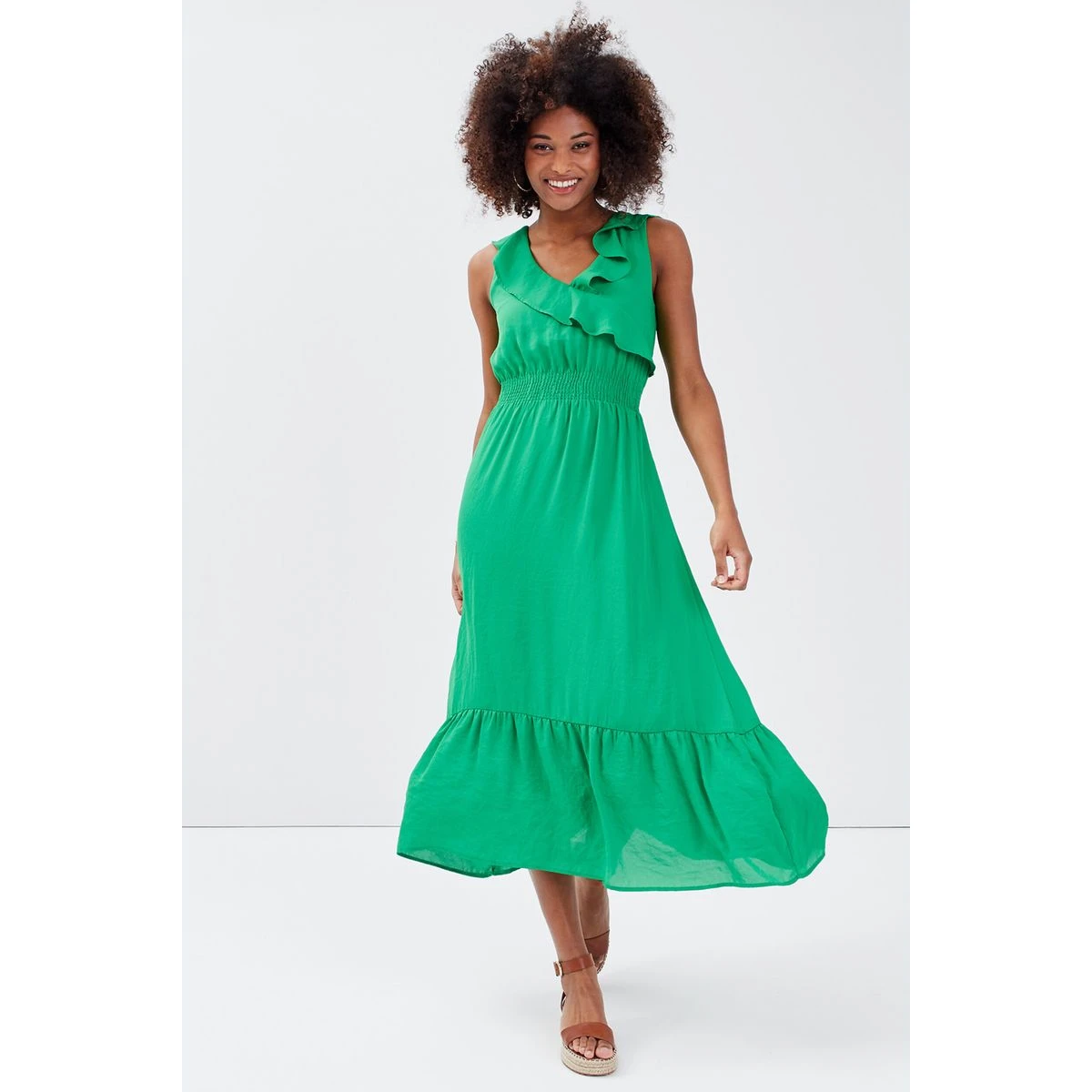 Robe longue évasée volantée vert menthe CACHE CACHE