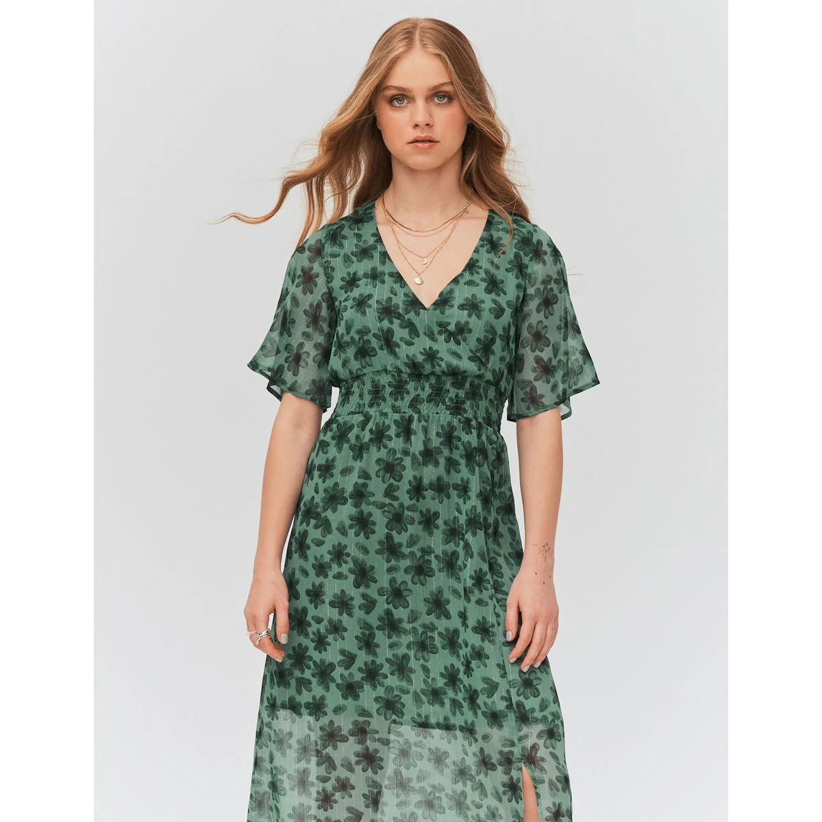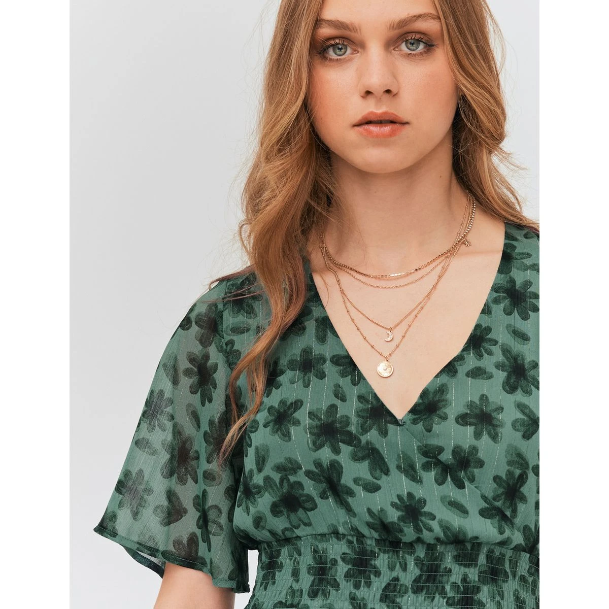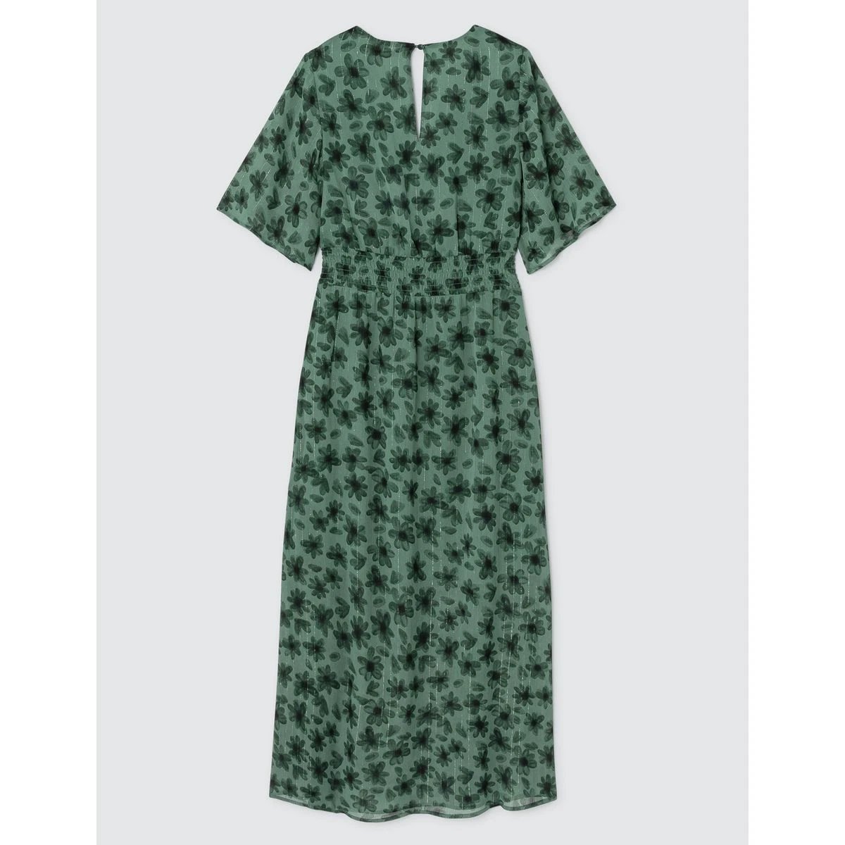 Robe longue cache-coeur imprimée – Imprimé fleuri – Encolure V – Manches courtes – Taille élastiquée et smockée – Bouton à pression au niveau de la poitrine – Dispose d’une doublure pour éviter toute transparence TAILLE ET COUPE – Coupe droite – La mannequin mesure 175 cm et porte une taille S BZB C.