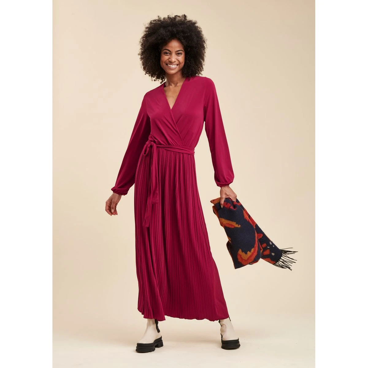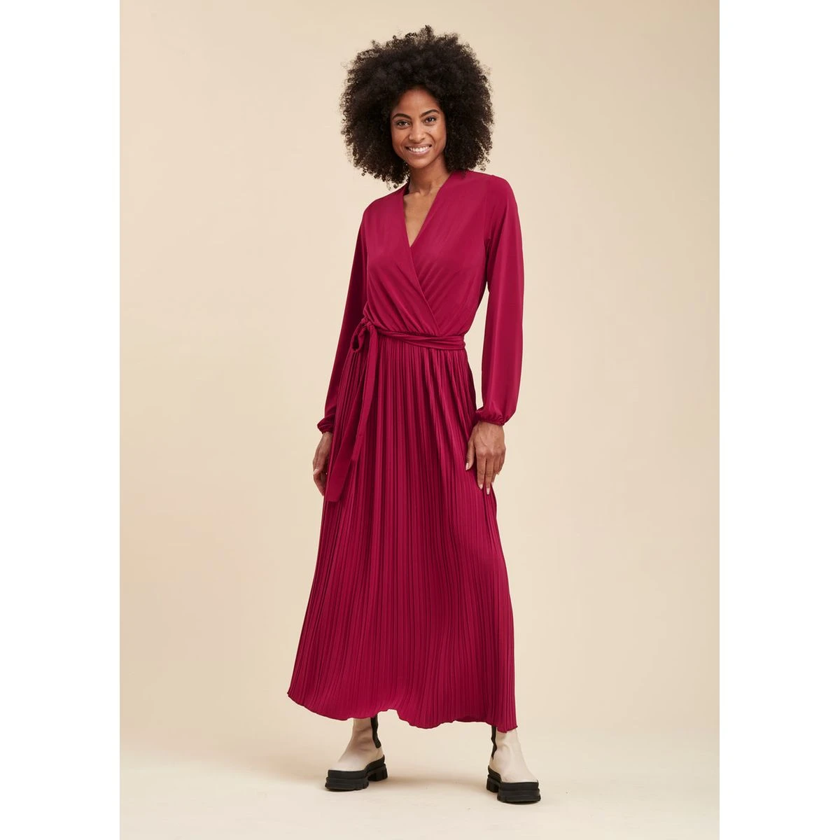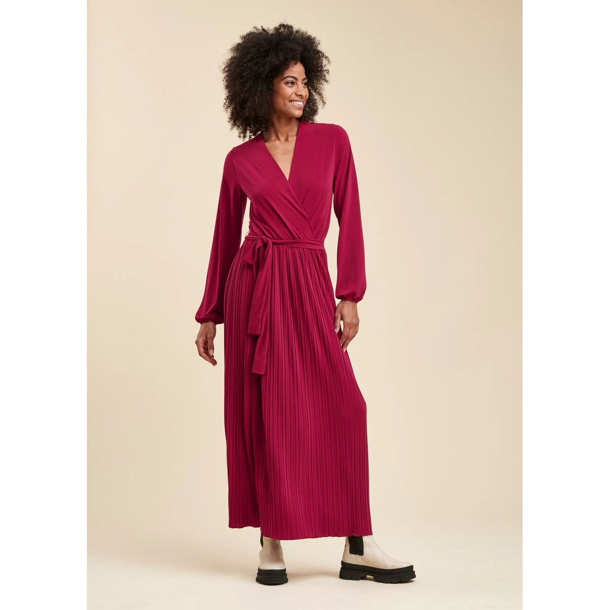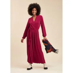 Robe longue jersey plissé rouge LA FEE MARABOUTEE