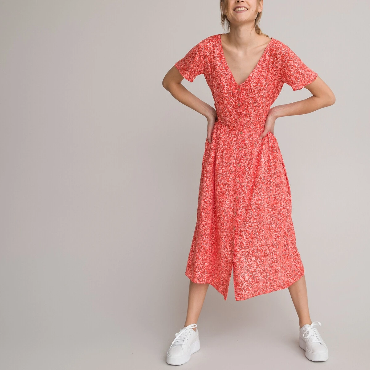 Robe manches courtes en côtes, joli dos noir LA REDOUTE COLLECTIONS