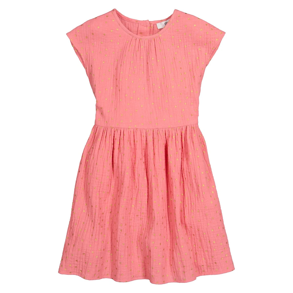 Robe manches courtes, gaze de coton, imprimé pois pois rose LA REDOUTE COLLECTIONS
