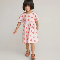Robe manches courtes, imprimé pommes rose pale LA REDOUTE COLLECTIONS